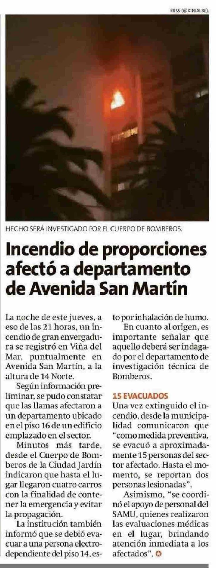 Incendio de proporciones afectó a departamento de Avenida San Martín 06-06-2025 La Estrella de Valparaíso |
