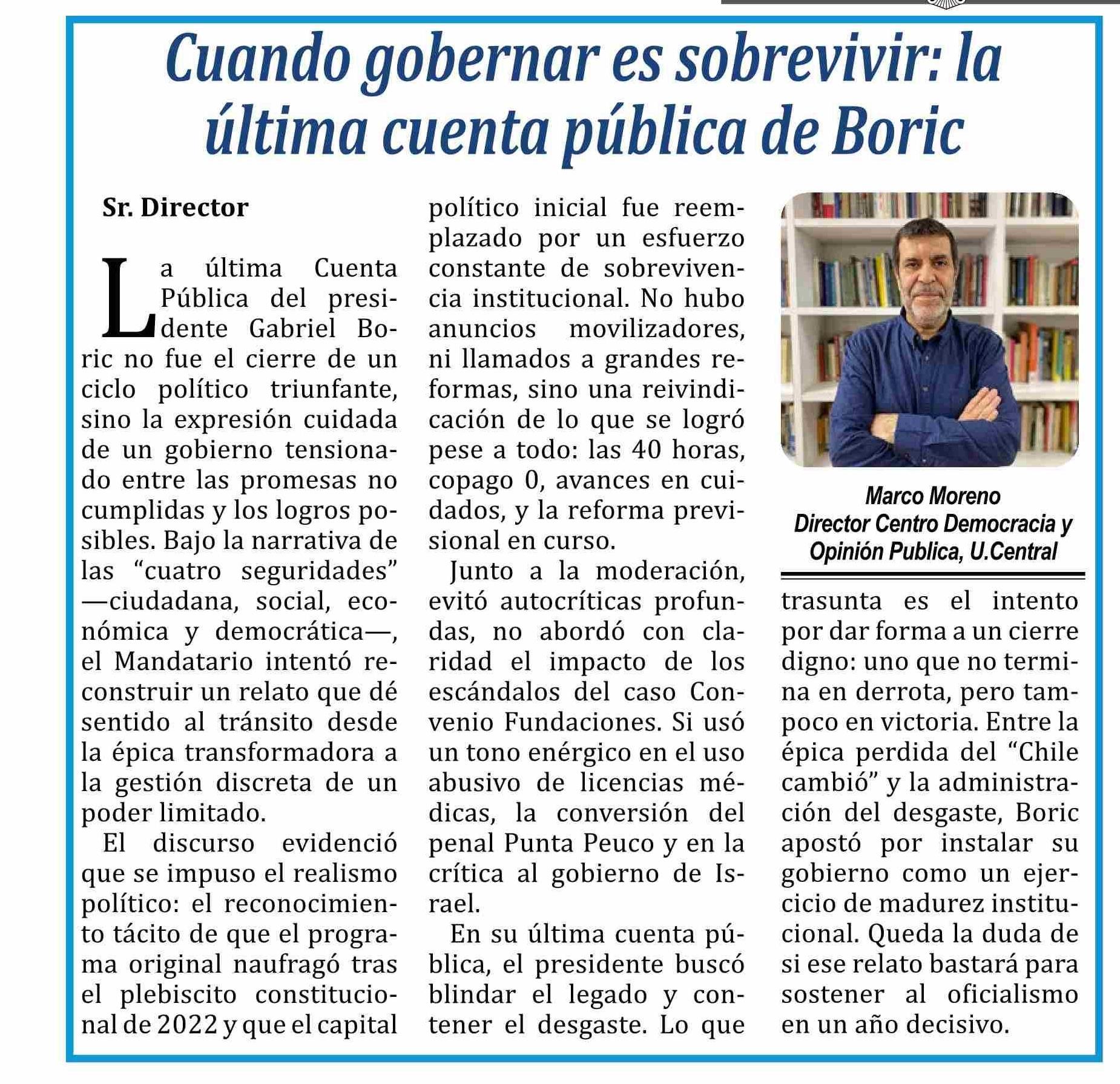 COLUMNAS DE OPINIÓN: Cuando gobernar es sobrevivir: la última cuenta pública de Boric 04-06-2025 Las Noticias |