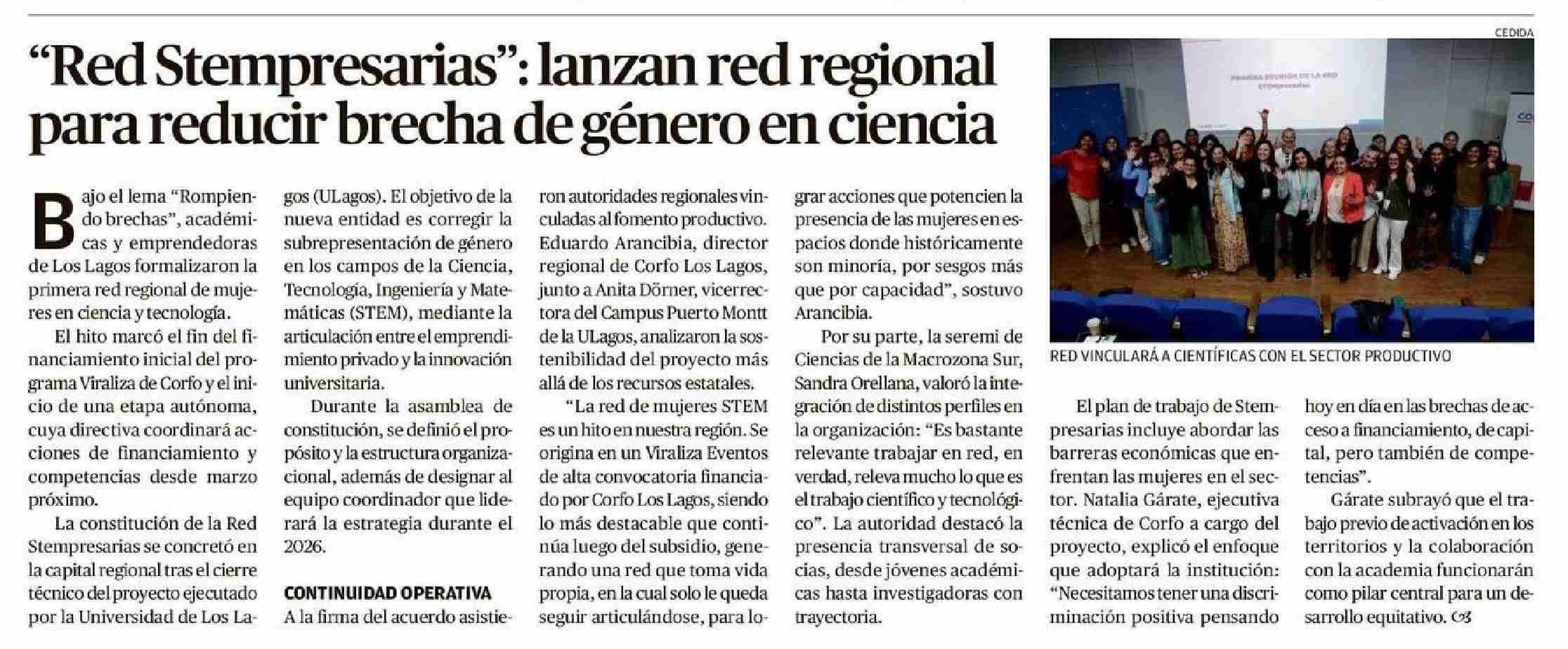 "Red Stempresarias": lanzan red regional para reducir brecha de género en ciencia 16-01-2026 El Llanquihue |