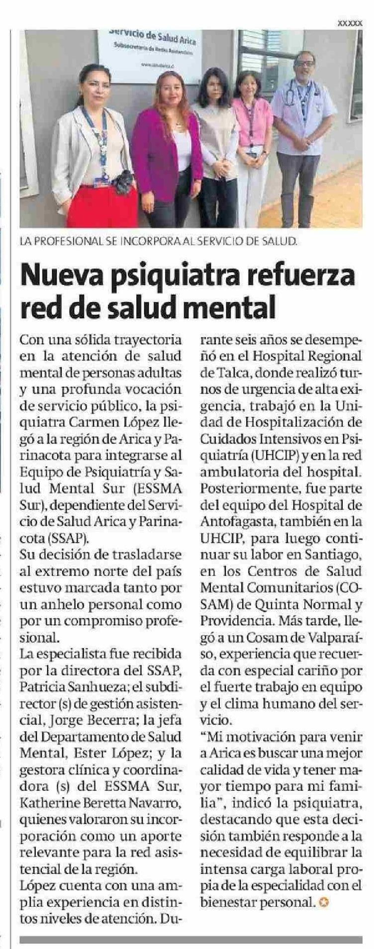 Nueva psiquiatra refuerza red de salud mental 07-01-2026 La Estrella de Arica |