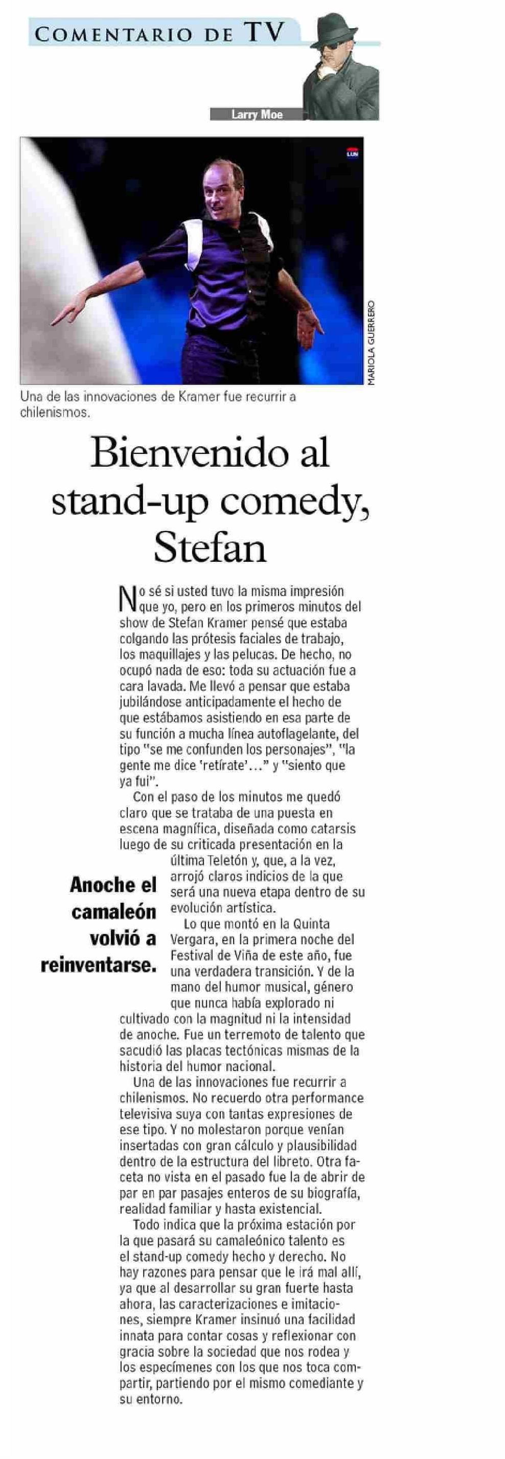 Título: COLUMNAS DE OPINIÓN: Bienvenido al stand—up comedy, Stefan