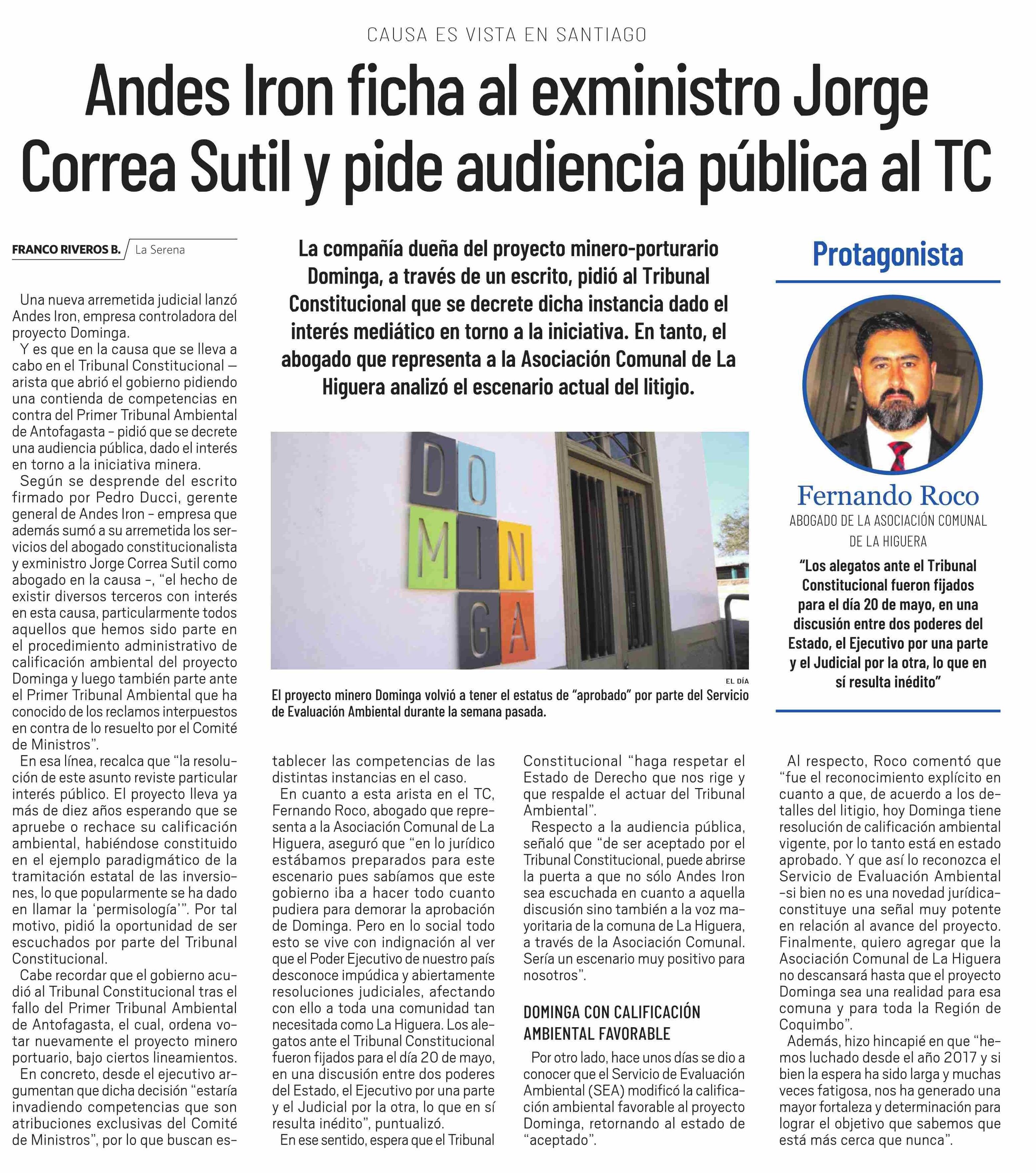 Andes Iron ficha al exministro Jorge Correa Sutil y pide audiencia pública al TC 14-05-2025 El Día |