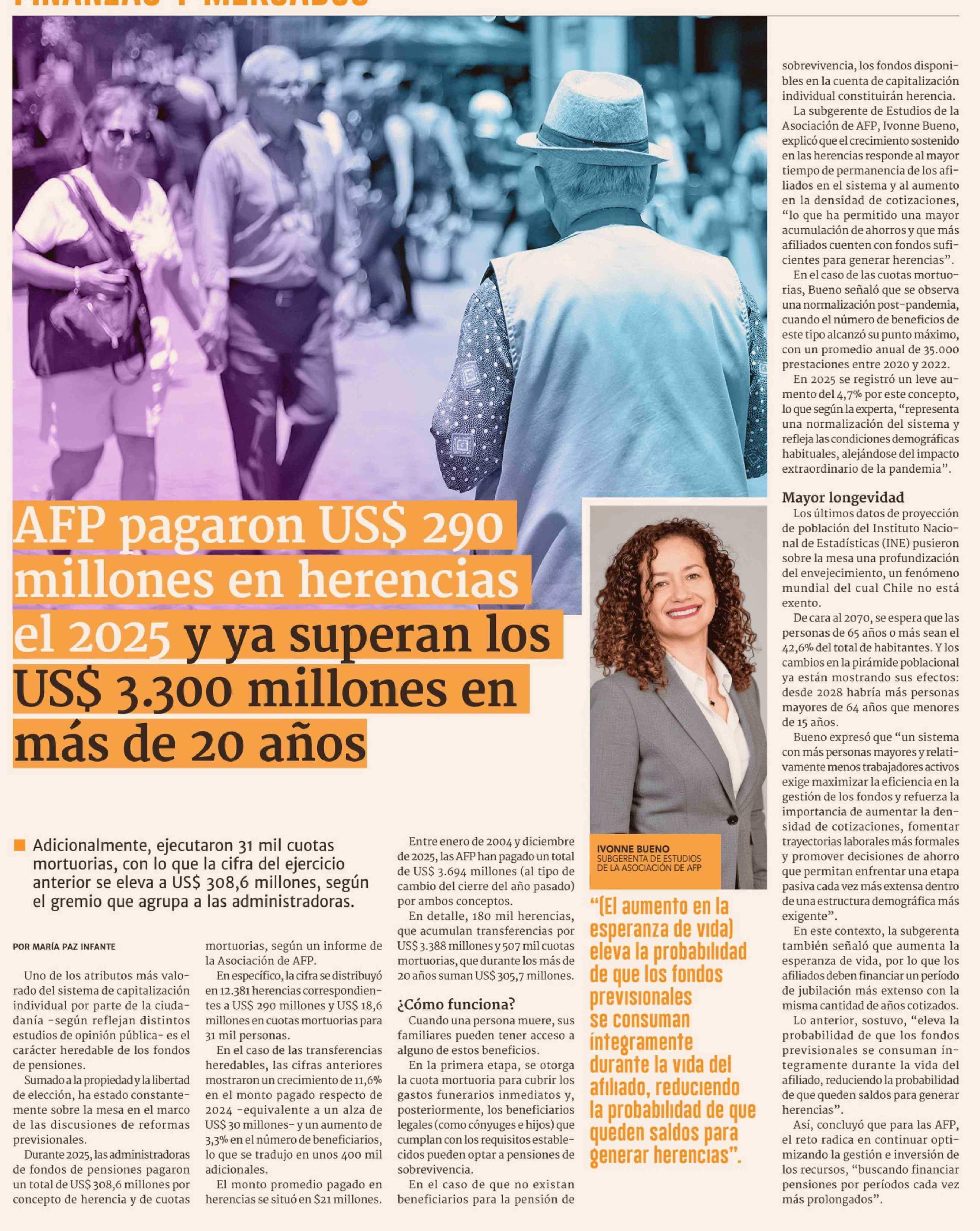 | Título: | AFP pagaron US$ 290 millones en herencias el 2025 y ya superan los US$ 3.300 millones en más de 20 años |