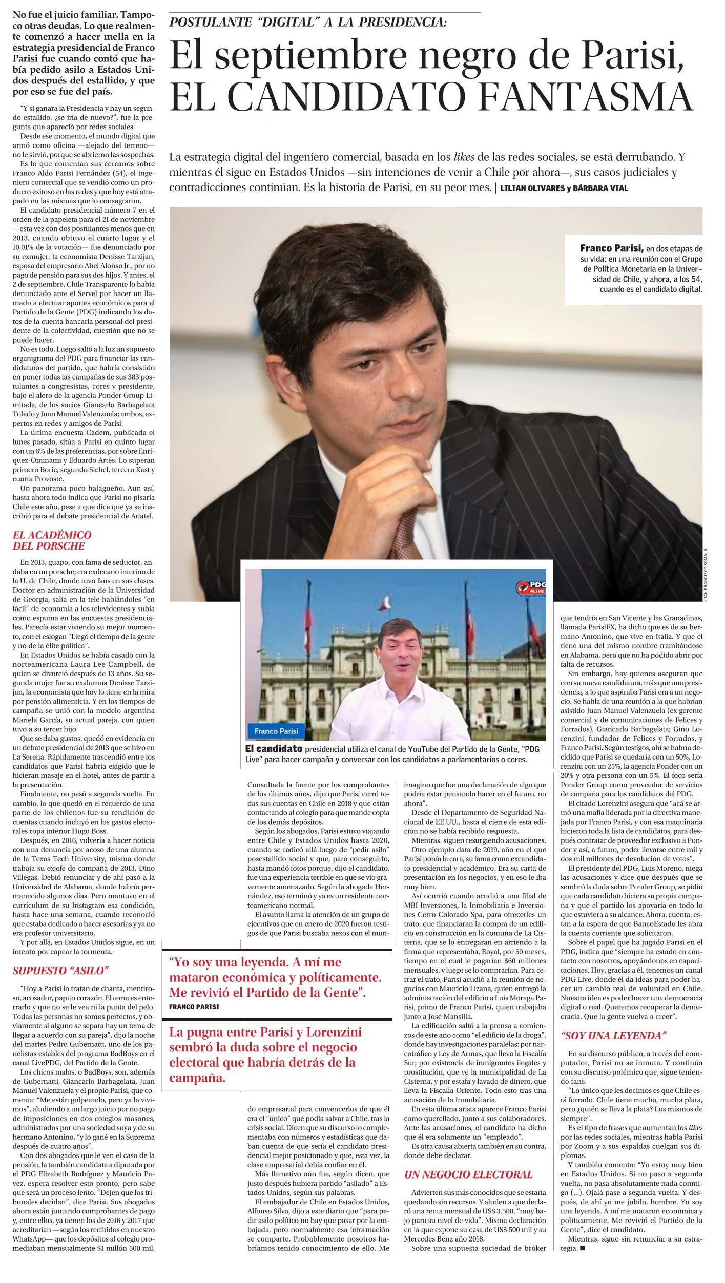 El septiembre negro de Parisi, EL CANDIDATO FANTASMA 26-09-2021 El Mercurio |