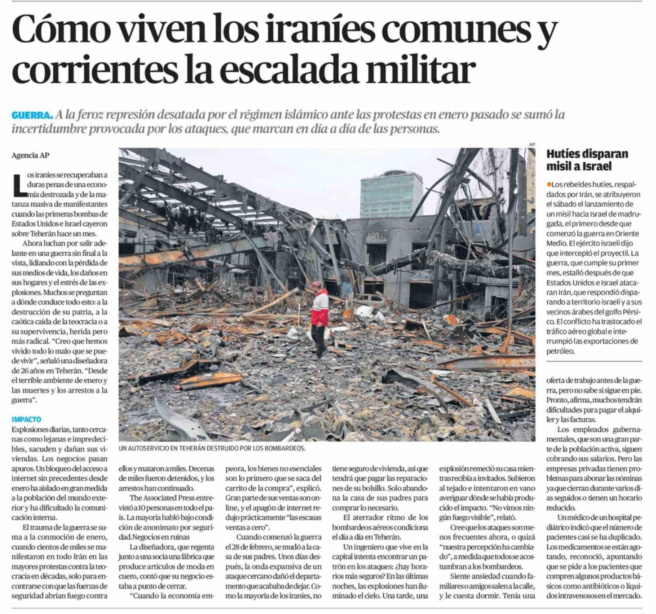 Cómo viven los iraníes comunes y corrientes la escalada militar 29-03-2026 El Mercurio de Antofagasta |