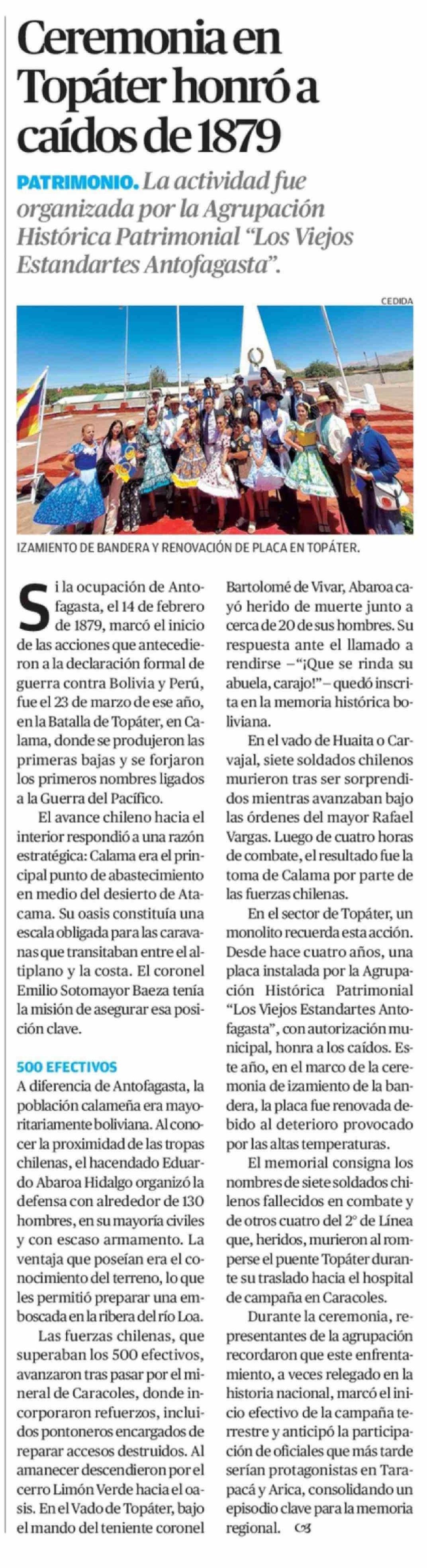 Ceremonia en Topáter honró a caídos de 1879 03-03-2026 El Mercurio de Antofagasta |