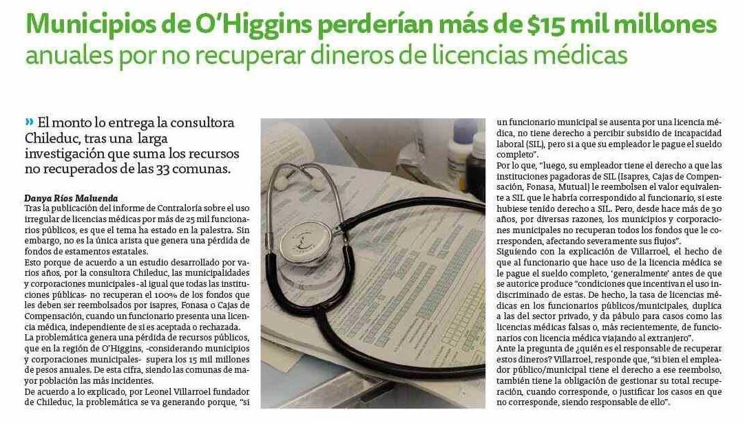 | Título: | Municipios de O'Higgins perderían más de $15 mil millones anuales por no recuperar dineros de licencias médicas |