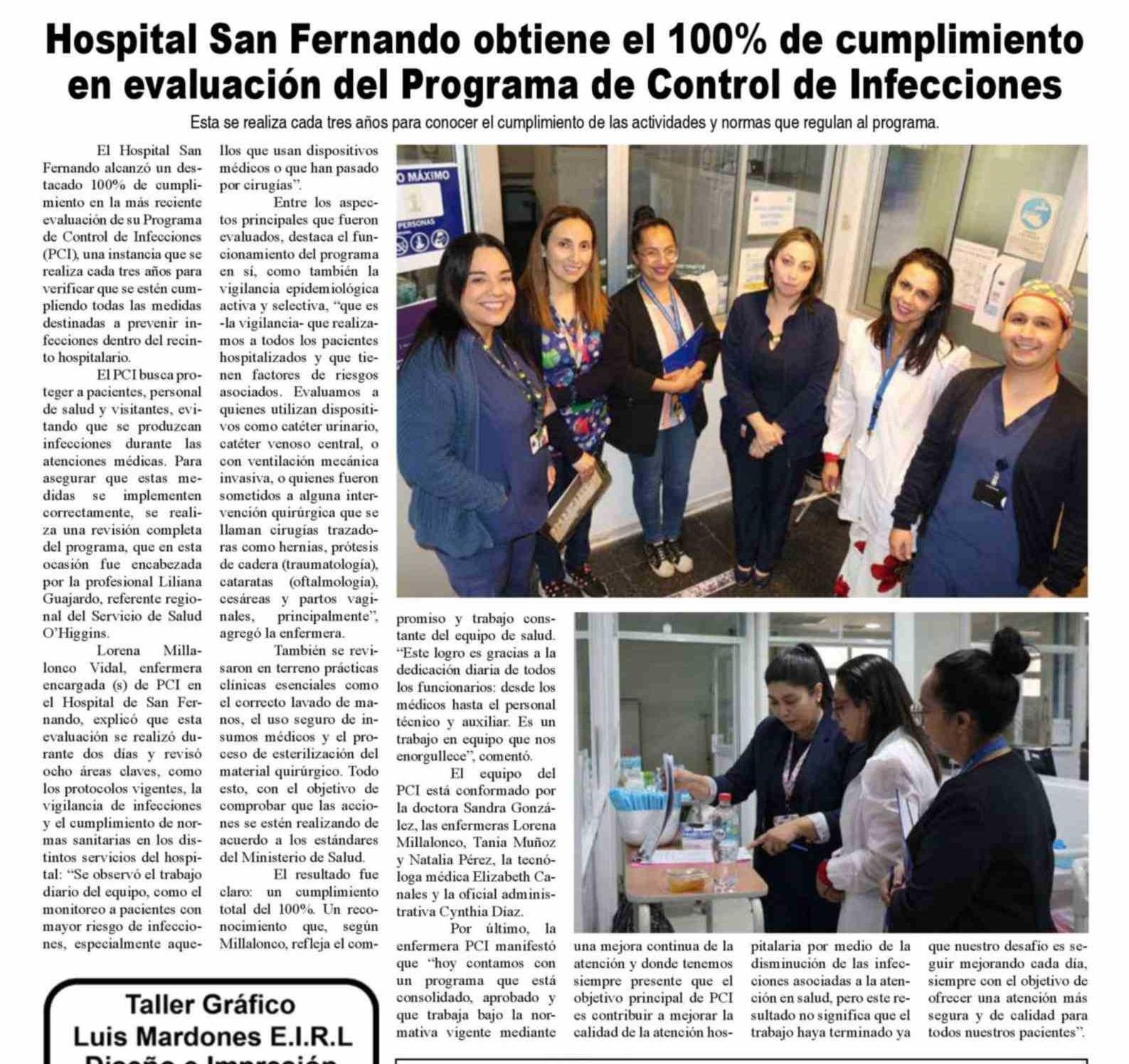 Hospital San Fernando obtiene el 100% de cumplimiento en evaluación del Programa de Control de Infecciones 29-05-2025 Diario VI Región |