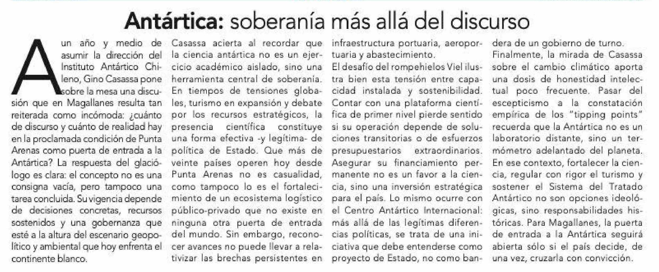 | Fecha: | 26-01-2026 | Sector: | Editorial | Región: | Región de Magallanes y de la Antártica Chilena |