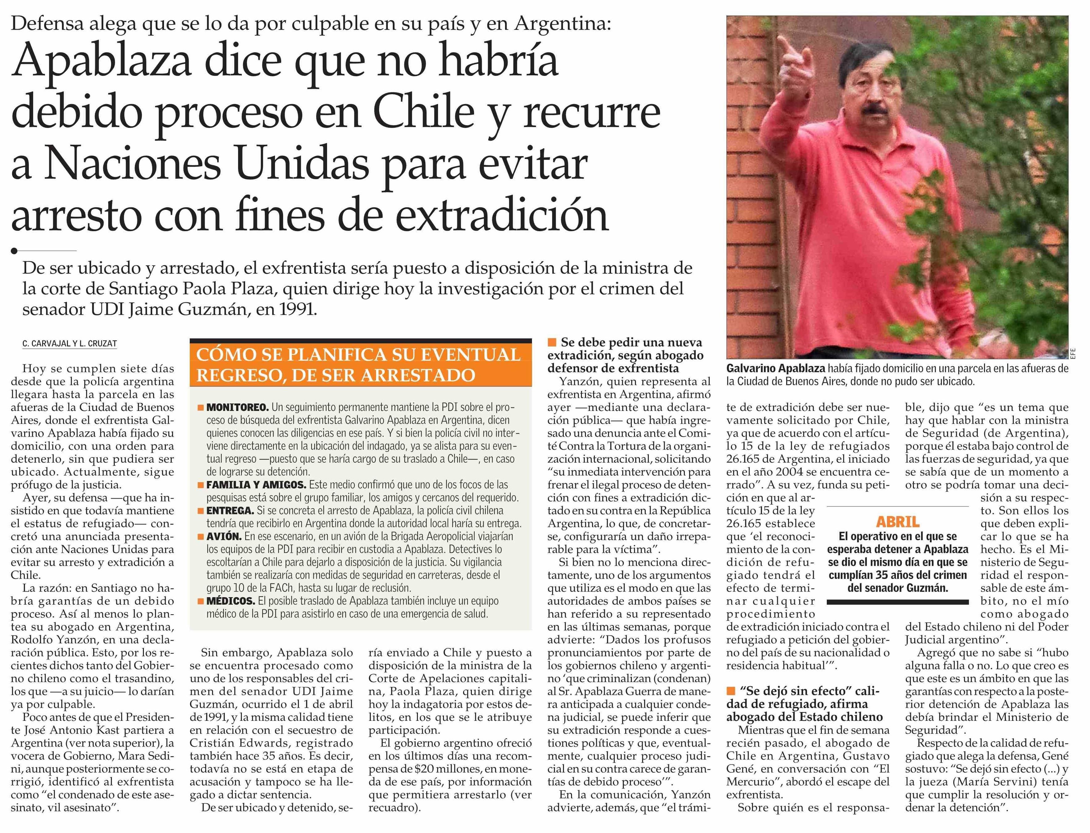 Título: Apablaza dice que no habría debido proceso en Chile y recurre a Naciones Unidas para evitar arresto con fines de extradición
