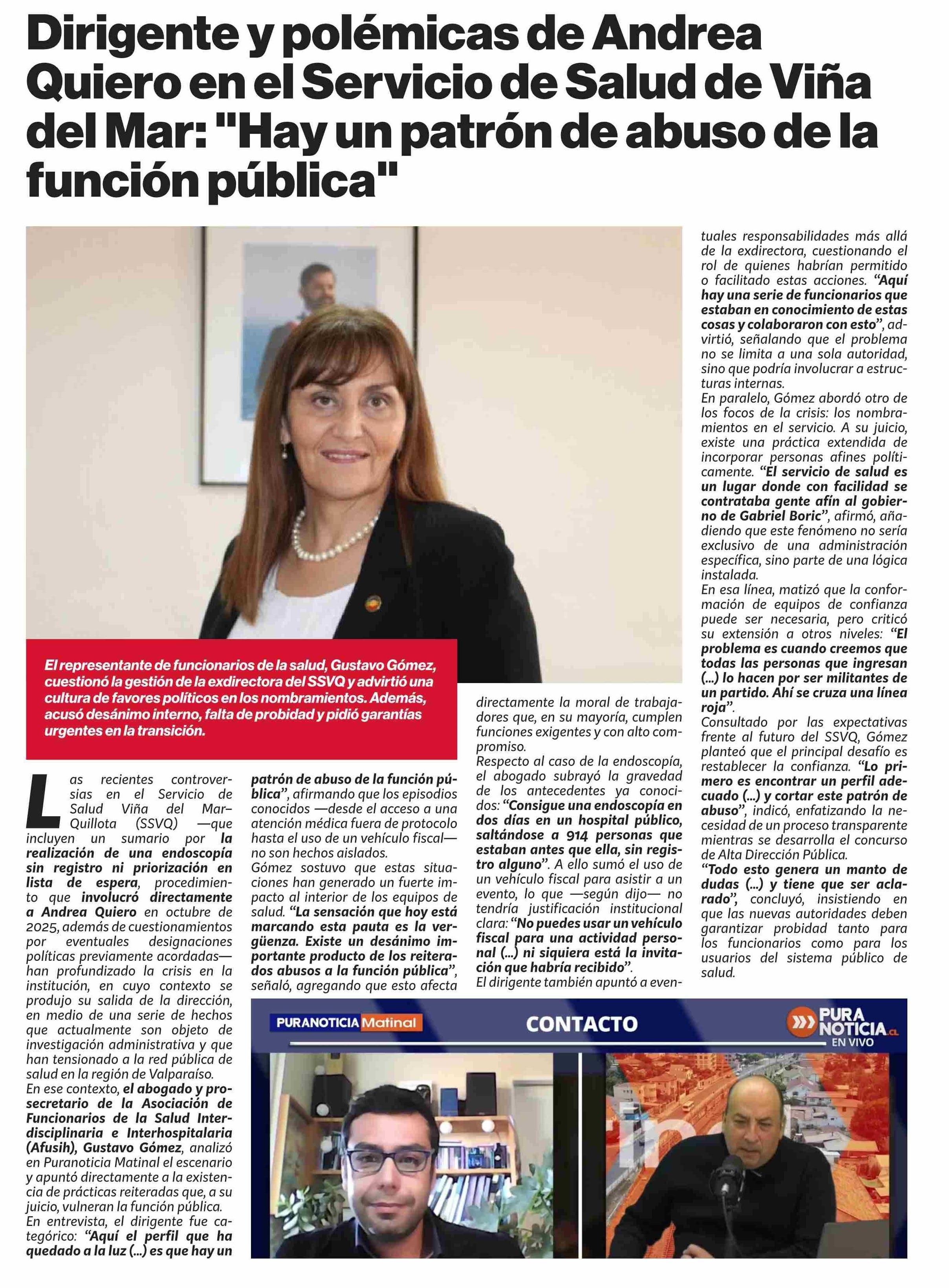 Título: Dirigente y polémicas de Andrea Quiero en el Servicio de Salud de Viña del Mar: "Hay un patrón de abuso de la función pública"