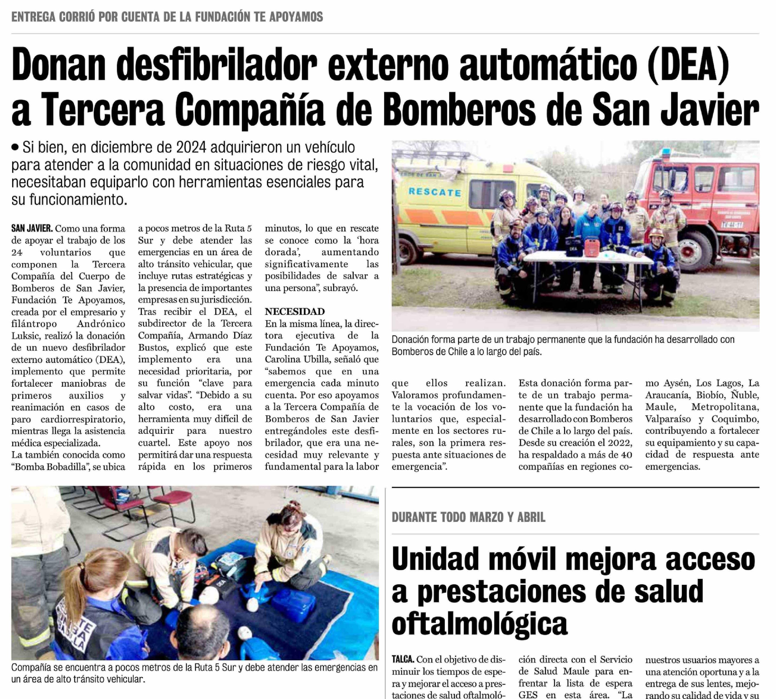 Título: Donan desfibrilador externo automático (DEA) a Tercera Compañía de Bomberos de San Javier