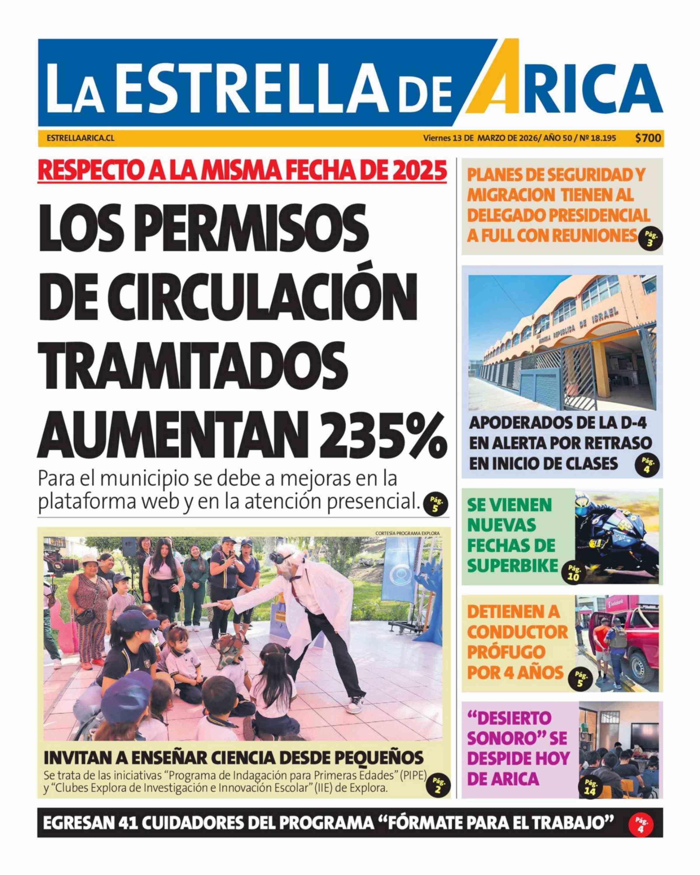PORTADA LA ESTRELLA DE ARICA – CHILE 13-03-2026 La Estrella de Arica |