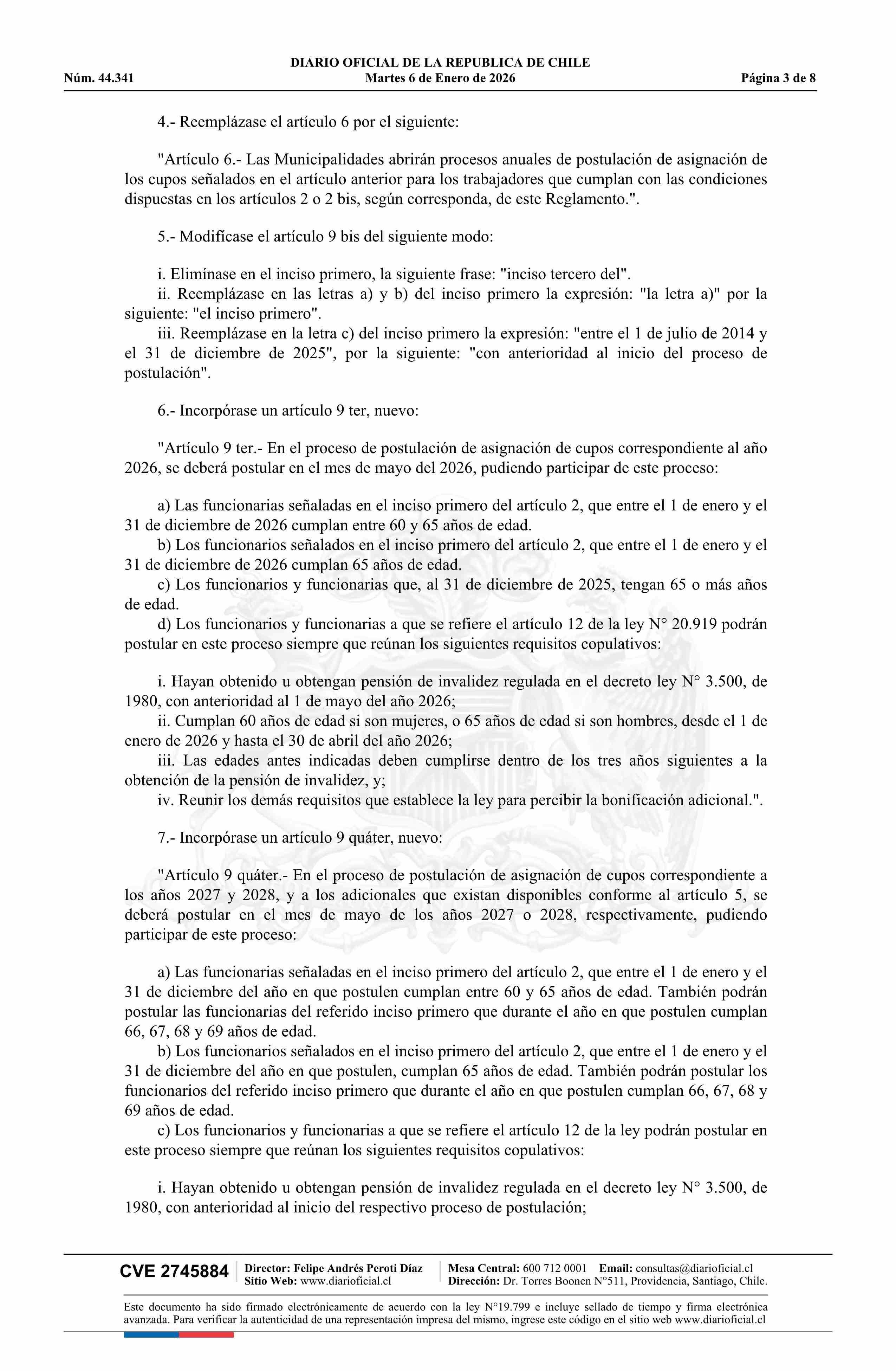 | Título: | Decreto número 13, de 2025.- Modifica decreto N° 26, de 2016, Reglamento para el otorgamiento de la bonificación por retiro voluntario y otros beneficios establecidos en la ley N° 20.919 |
