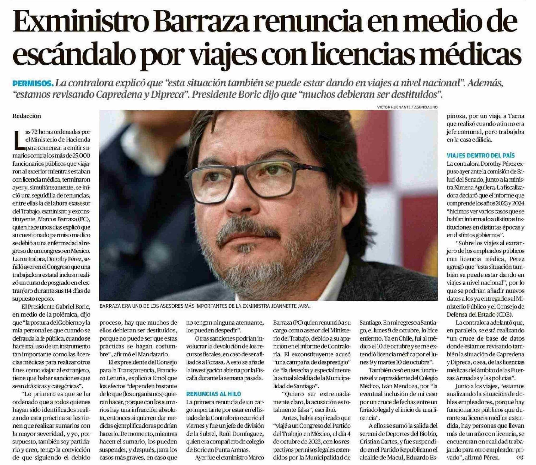 Exministro Barraza renuncia en medio de escándalo por viajes con licencias médicas 27-05-2025 El Austral de Osorno |