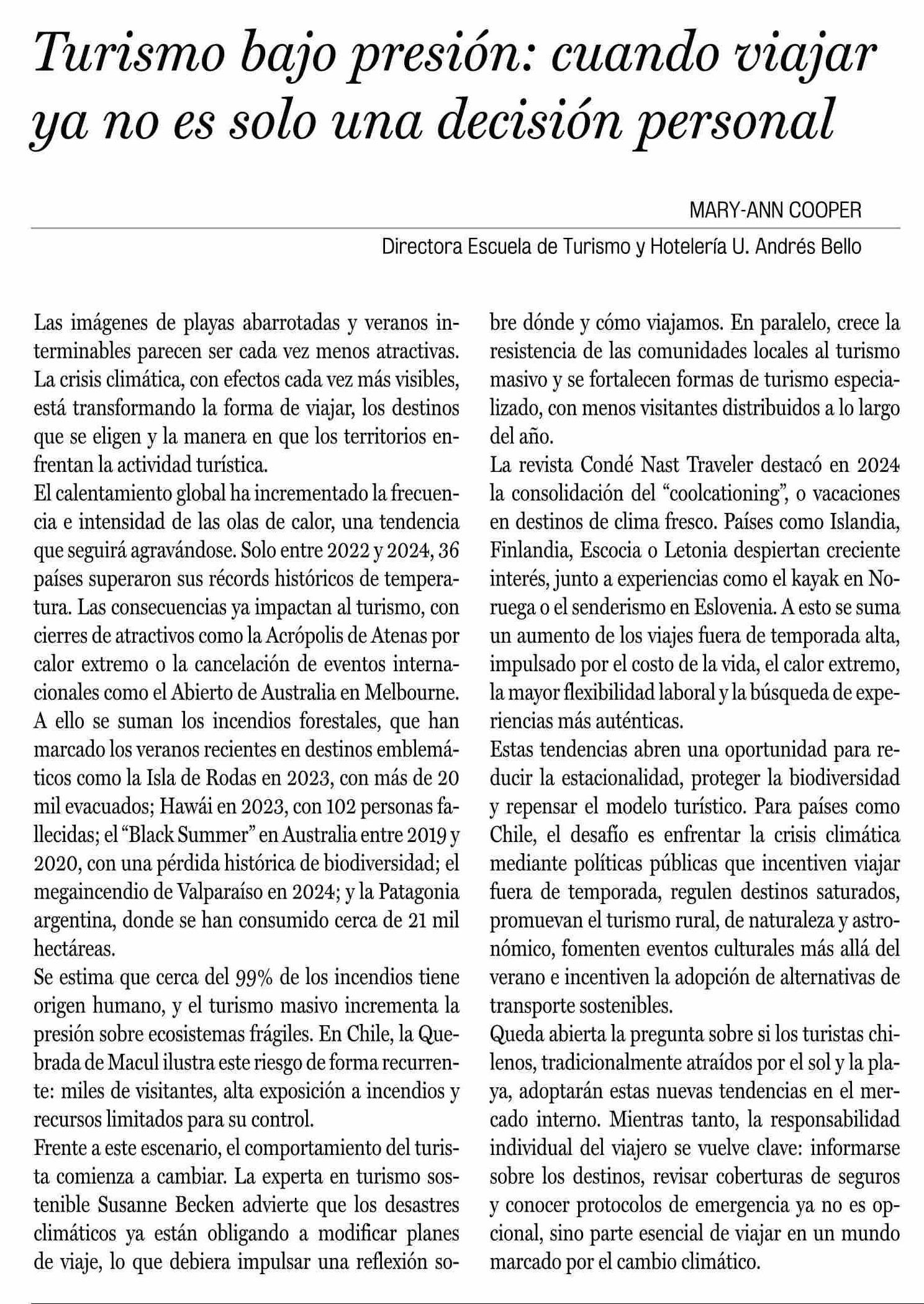 Título: Cartas: Turismo bajo presión: cuando viajar ya no es solo una decisión personal