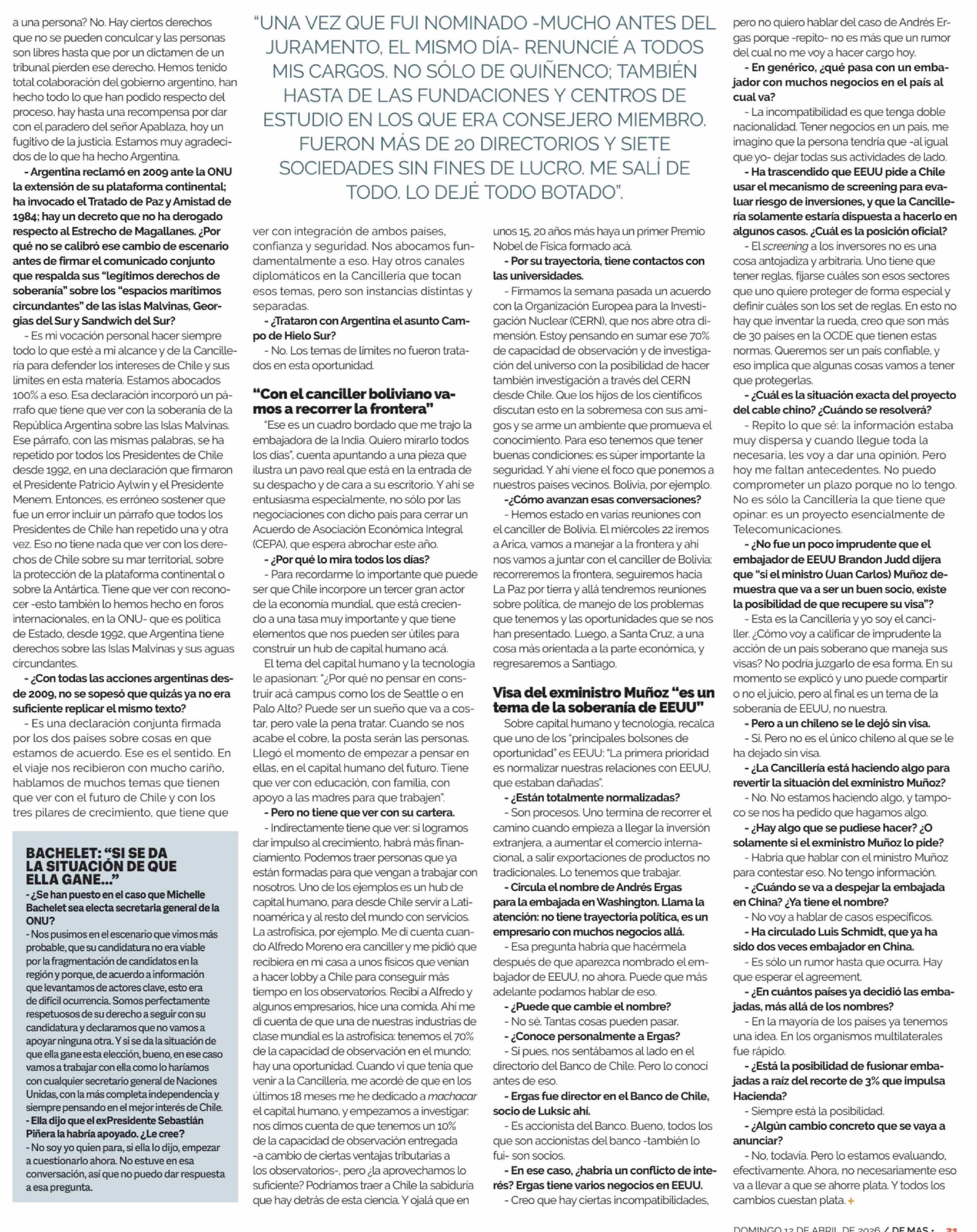FRANCISCO PÉREZ MACKENNA, CANCILLER: "LA PRIORIDAD ES NORMALIZAR NUESTRAS RELACIONES CON EEUU, QUE ESTABAN DAÑADAS" 12-04-2026 Diario Financiero |
