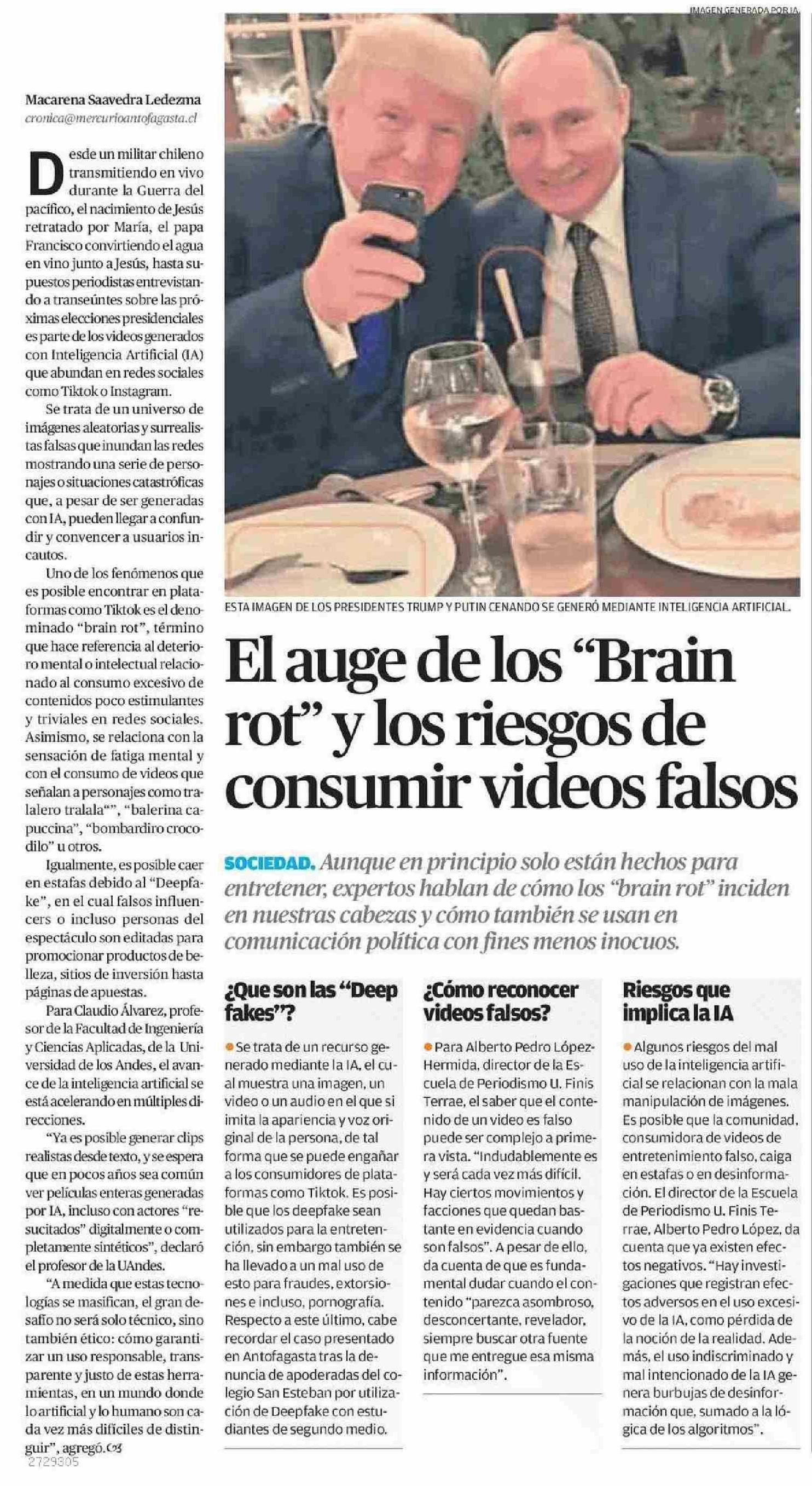 El auge de los “Brain rot” y los riesgos de consumir videos falsos 18-06-2025 El Mercurio de Antofagasta |