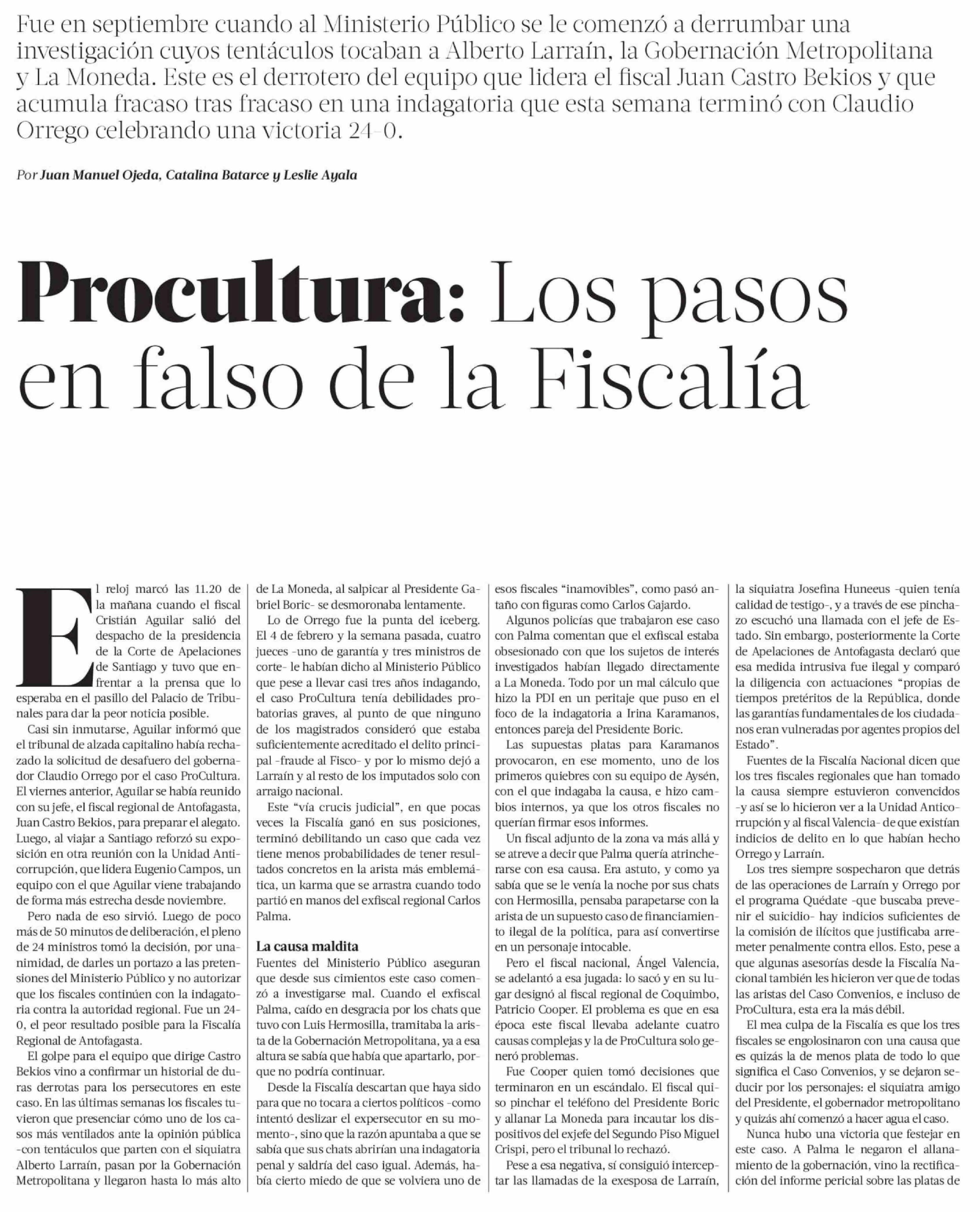 Procultura: Los pasos en falso de la Fiscalía 22-02-2026 La Tercera |