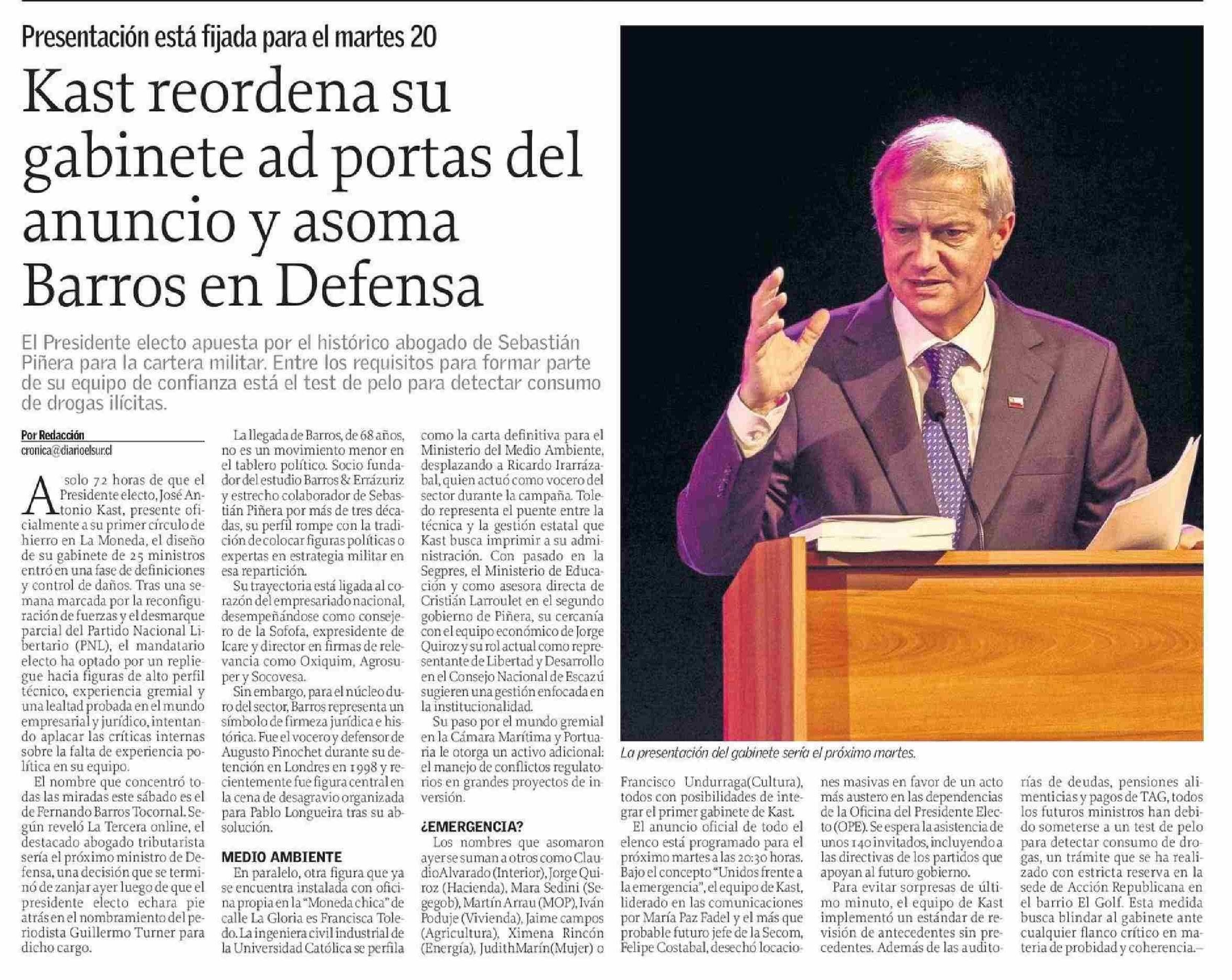 Título: Kast reordena su gabinete ad portas del anuncio y asoma Barros en Defensa
