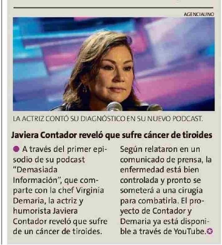 Título: Javiera Contador reveló que sufre cáncer de tiroides