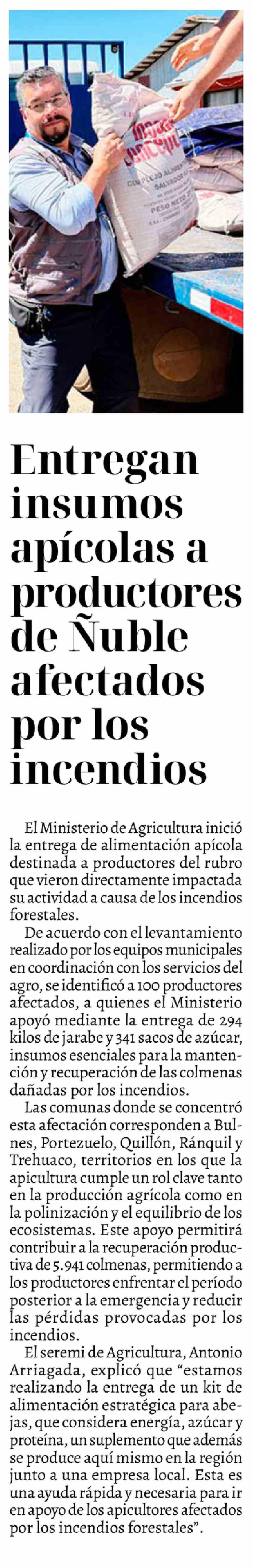 Título: Entregan insumos apícolas a productores de Ñuble afectados por los incendios