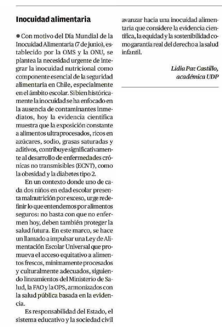 CARTAS: Inocuidad alimentaria 09-06-2025 El Austral de Osorno |