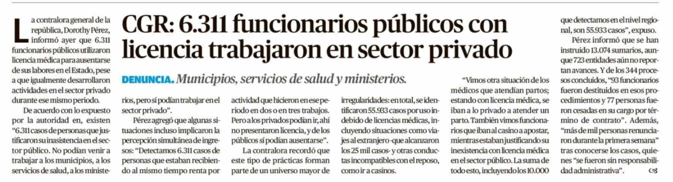 Título: CGR: 6.311 funcionarios públicos con licencia trabajaron en sector privado