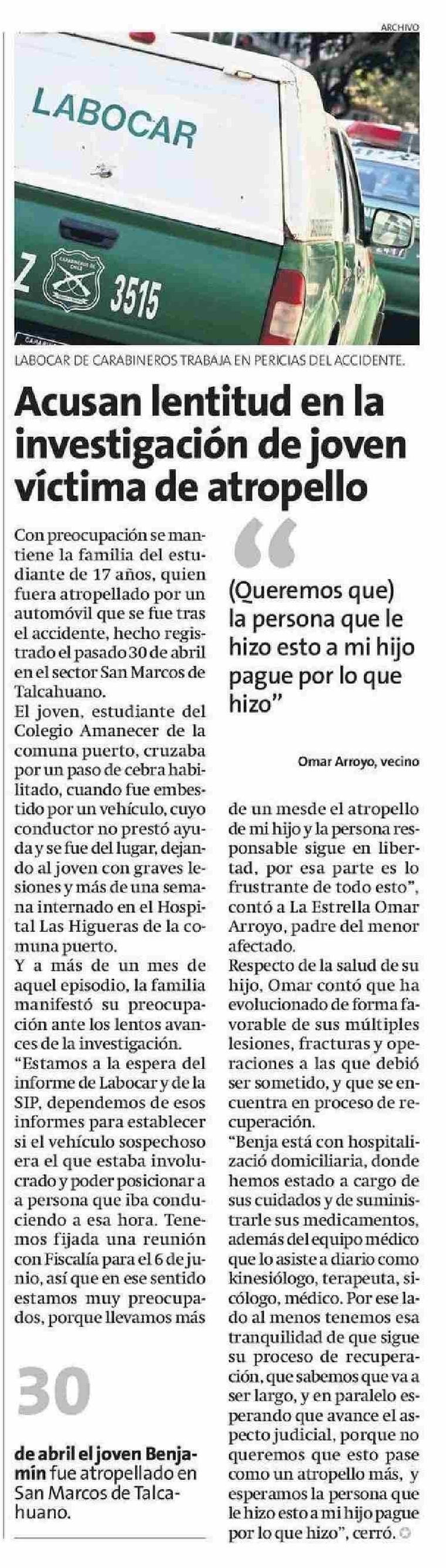 Acusan lentitud en la investigación de joven víctima de atropello 03-06-2025 La Estrella de Concepción |