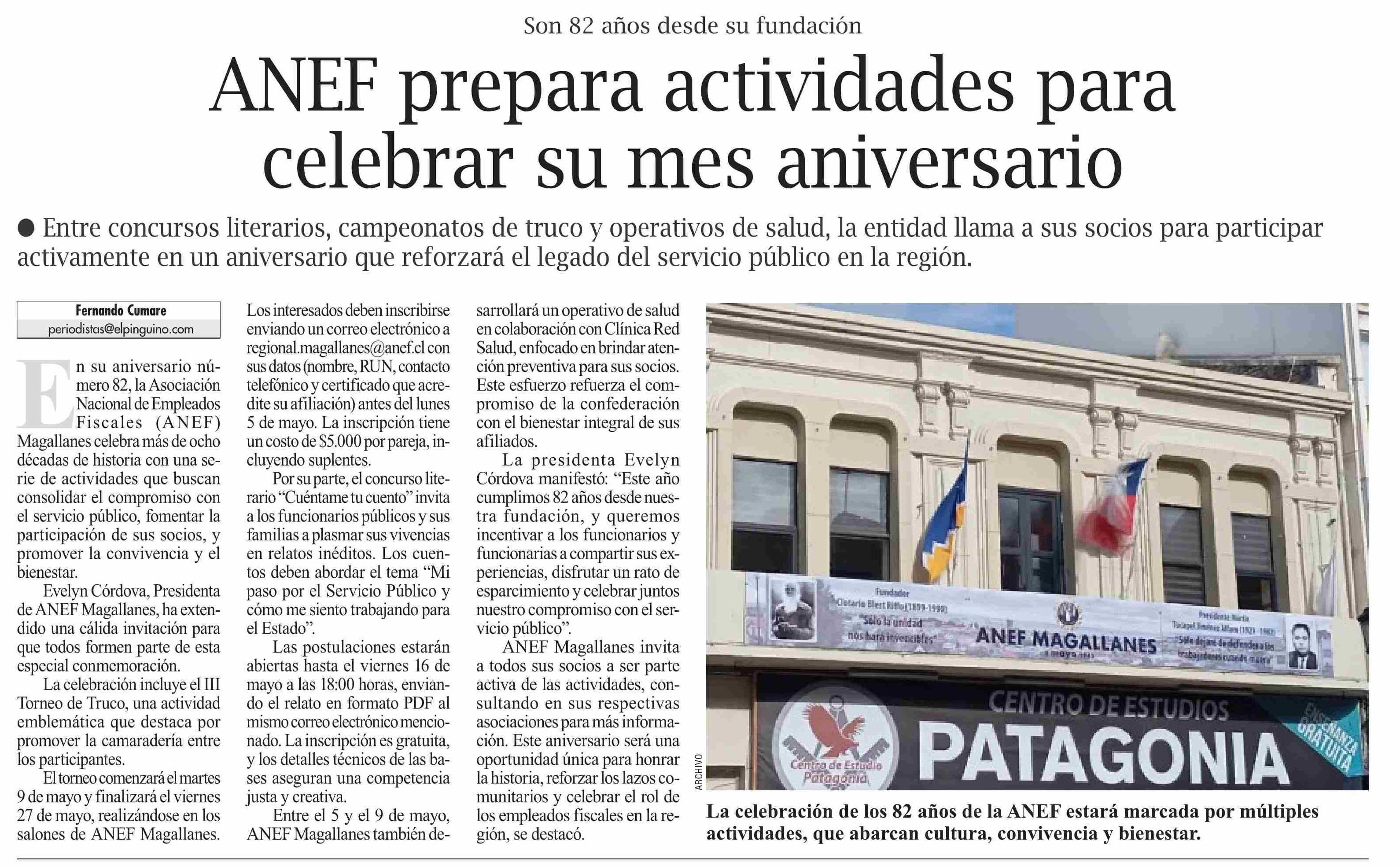 ANEF prepara actividades para celebrar su mes aniversario 29-04-2025 El Pingüino |