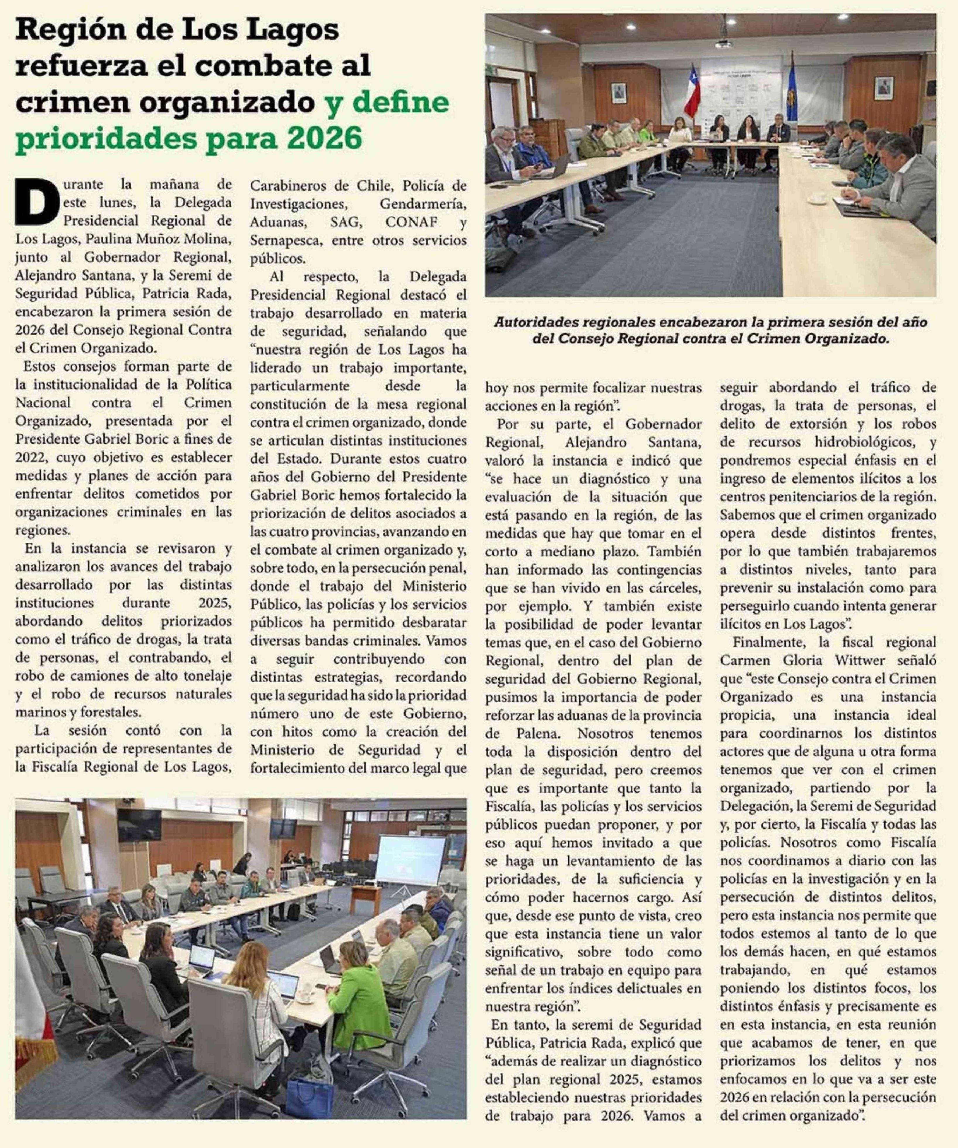 | Título: | Región de Los Lagos refuerza el combate al crimen organizado y define prioridades para 2026 |