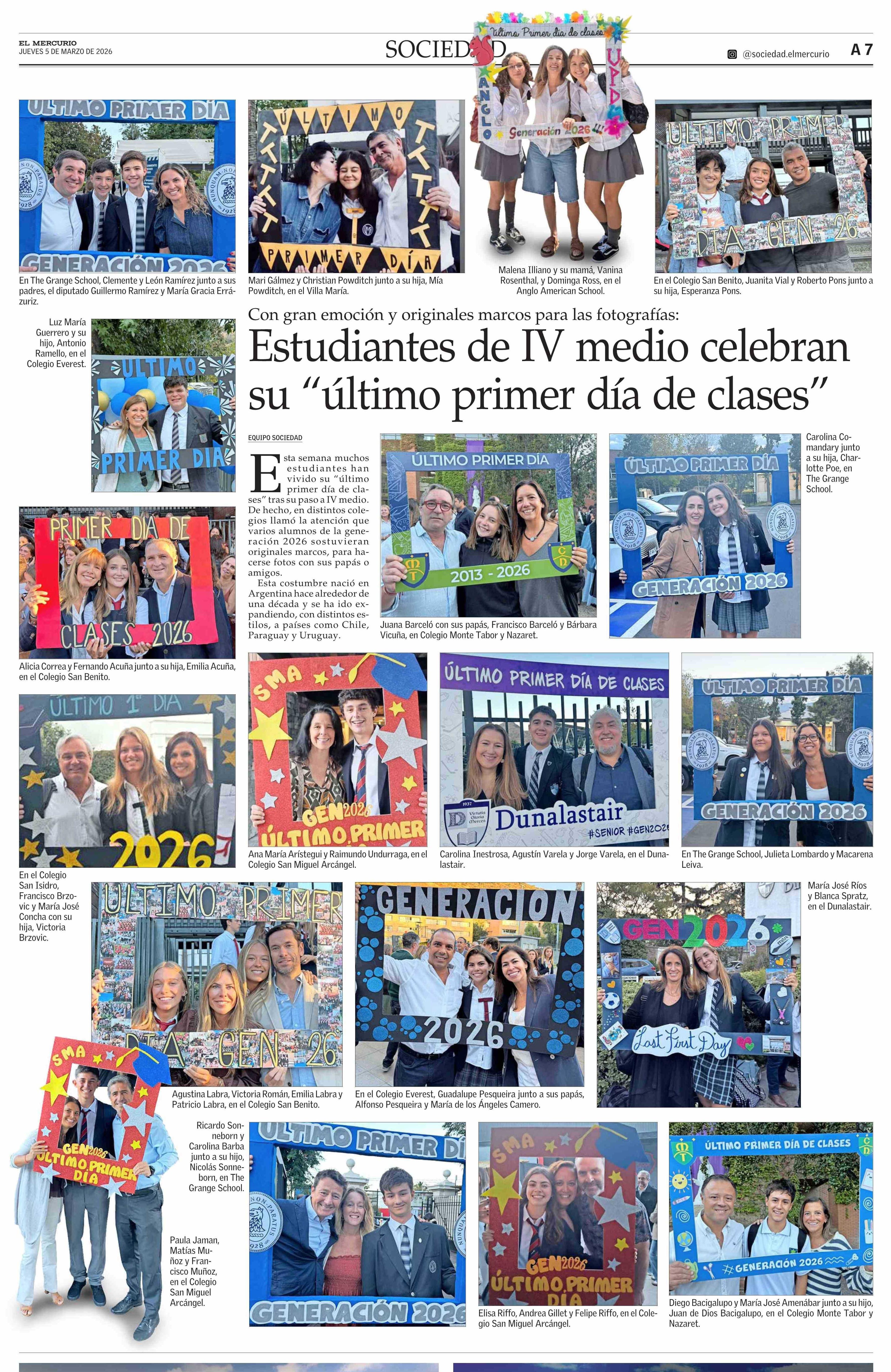 Estudiantes de IV medio celebran su “último primer día de clases” 05-03-2026 El Mercurio |