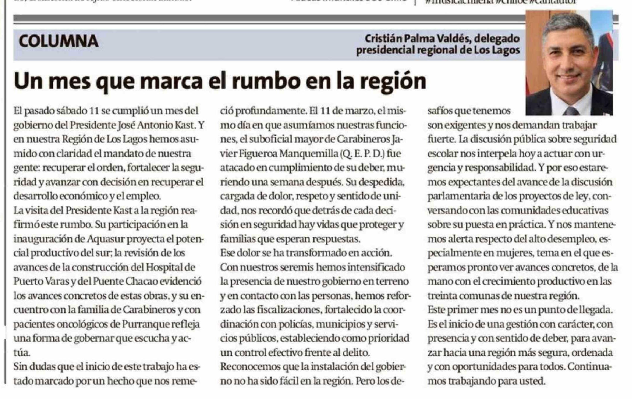 Fecha: 17-04-2026 Sector: Columnas de Opinión Región: Región de Los Lagos