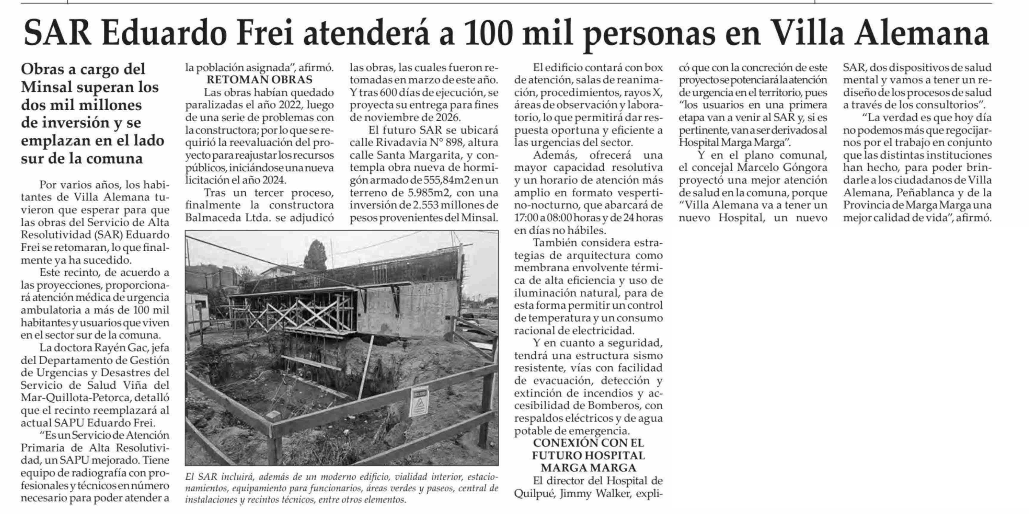 Título: SAR Eduardo Frei atenderá a mii personas en Villa Alemana