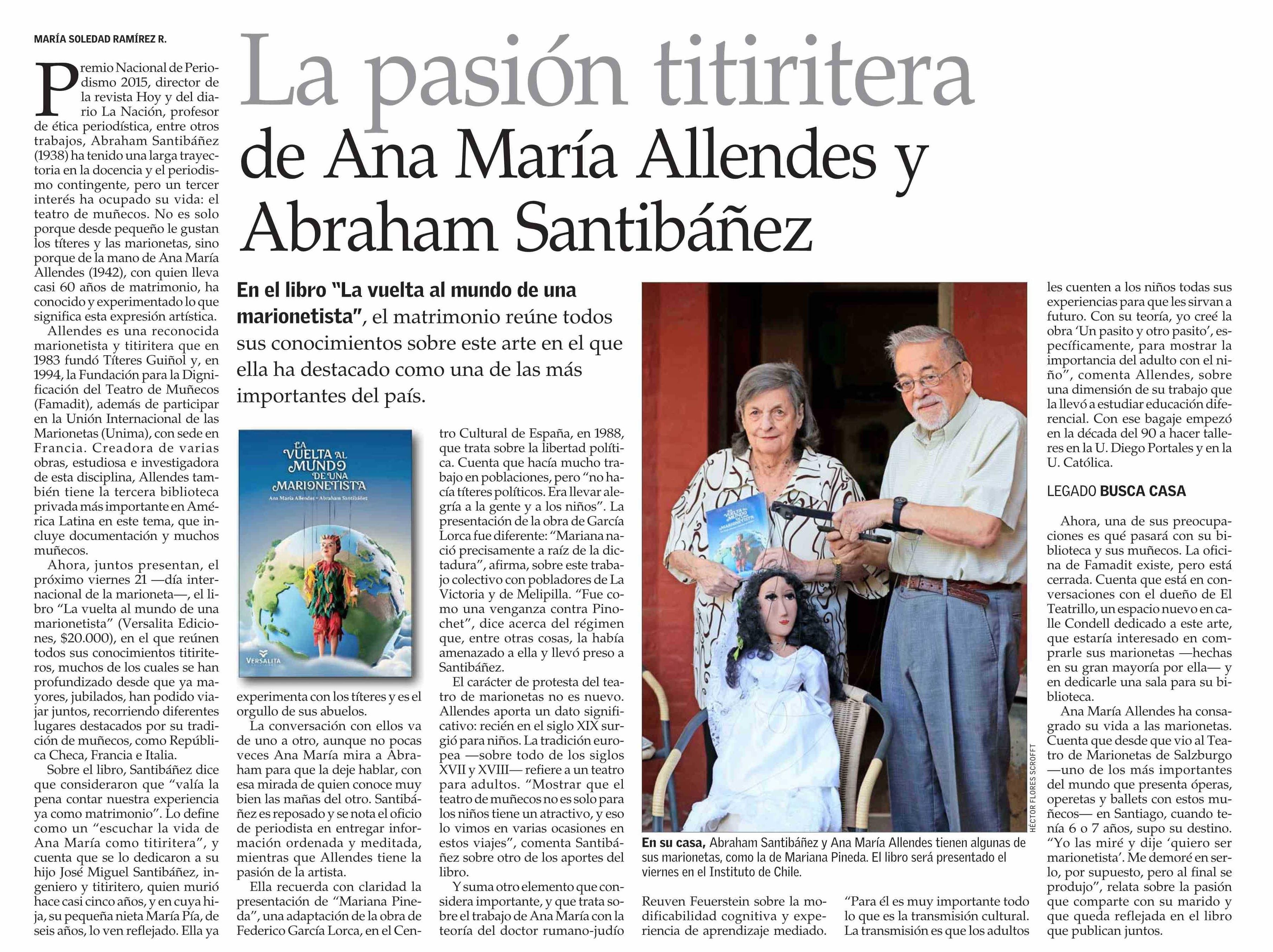 La pasión titiritera de Ana María Allendes y Abraham Santibáñez 17-03-2025 El Mercurio |
