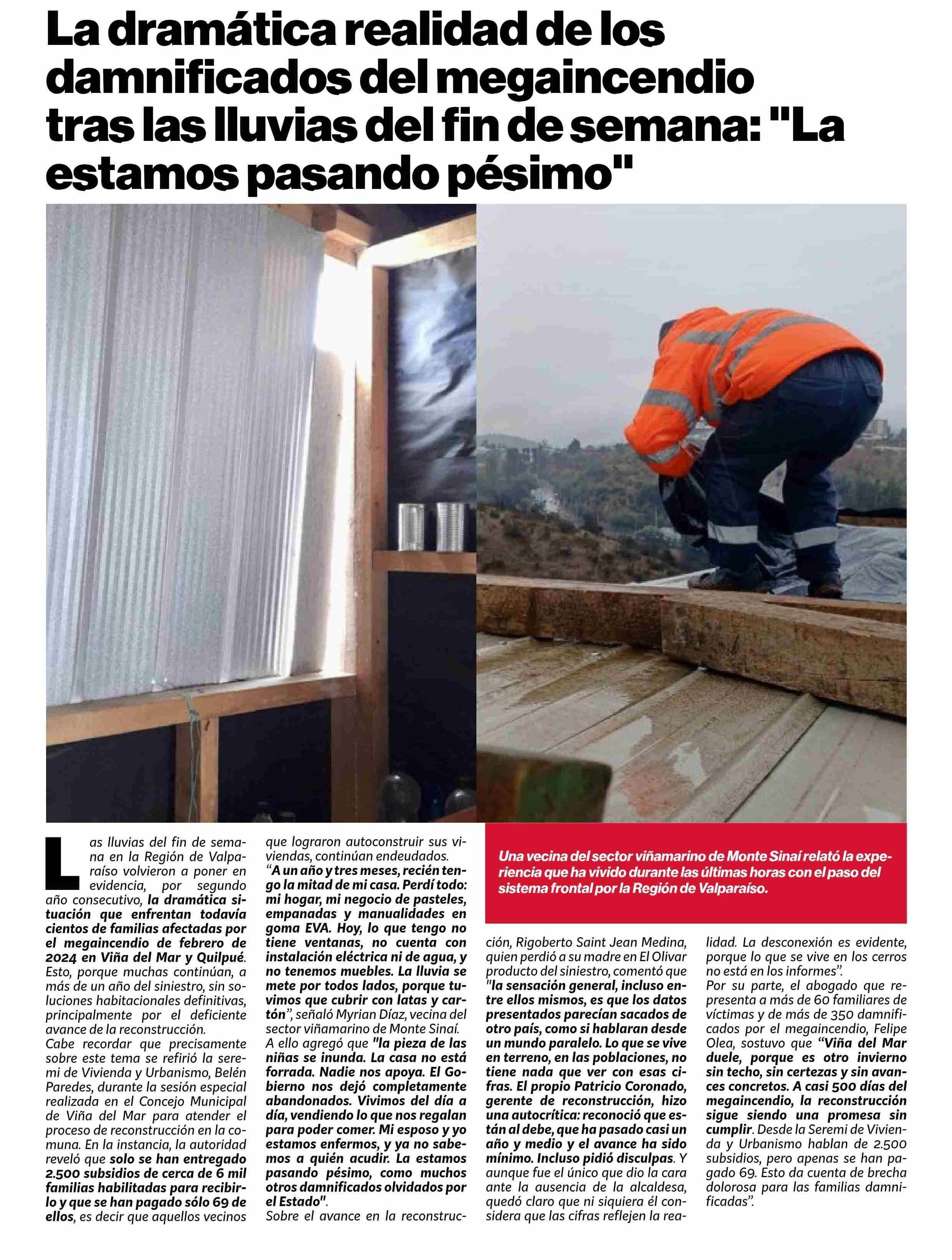 La dramática realidad de los damnificados del megaincendio tras las lluvias del fin de semana: "La estamos pasando pésimo” 19-05-2025 Puranoticia.cl |