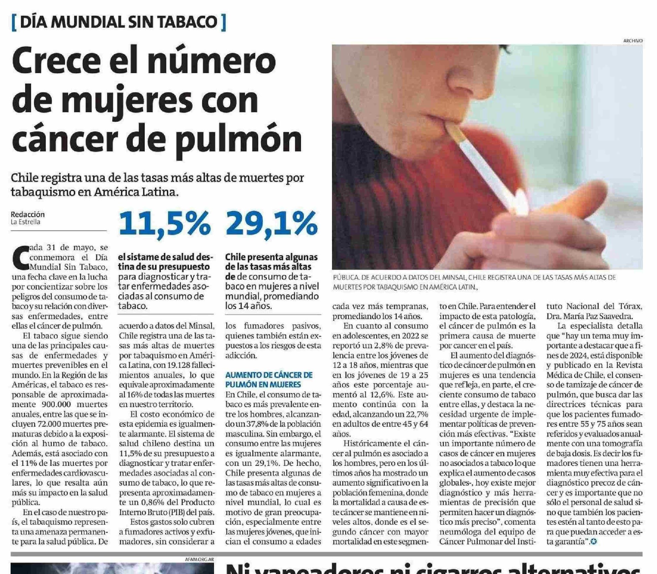 Crece el número de mujeres con cáncer de pulmón 31-05-2025 La Estrella de Antofagasta |