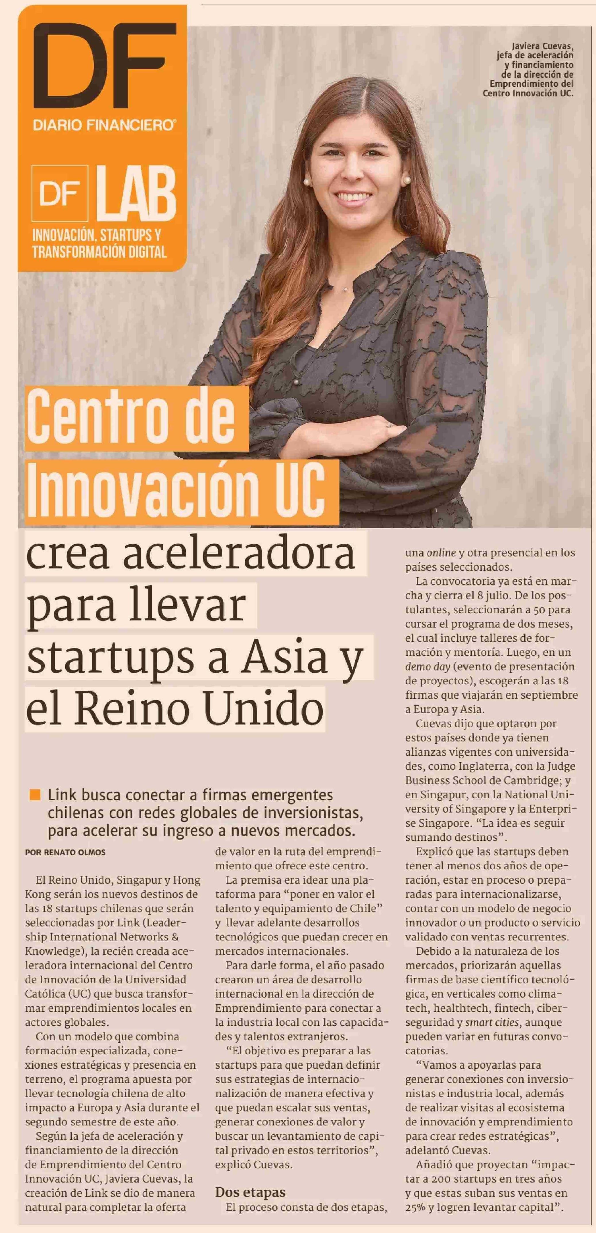 Centro de Innovación UC crea aceleradora para llevar startups a Asia y el Reino Unido 13-03-2025 Diario Financiero |