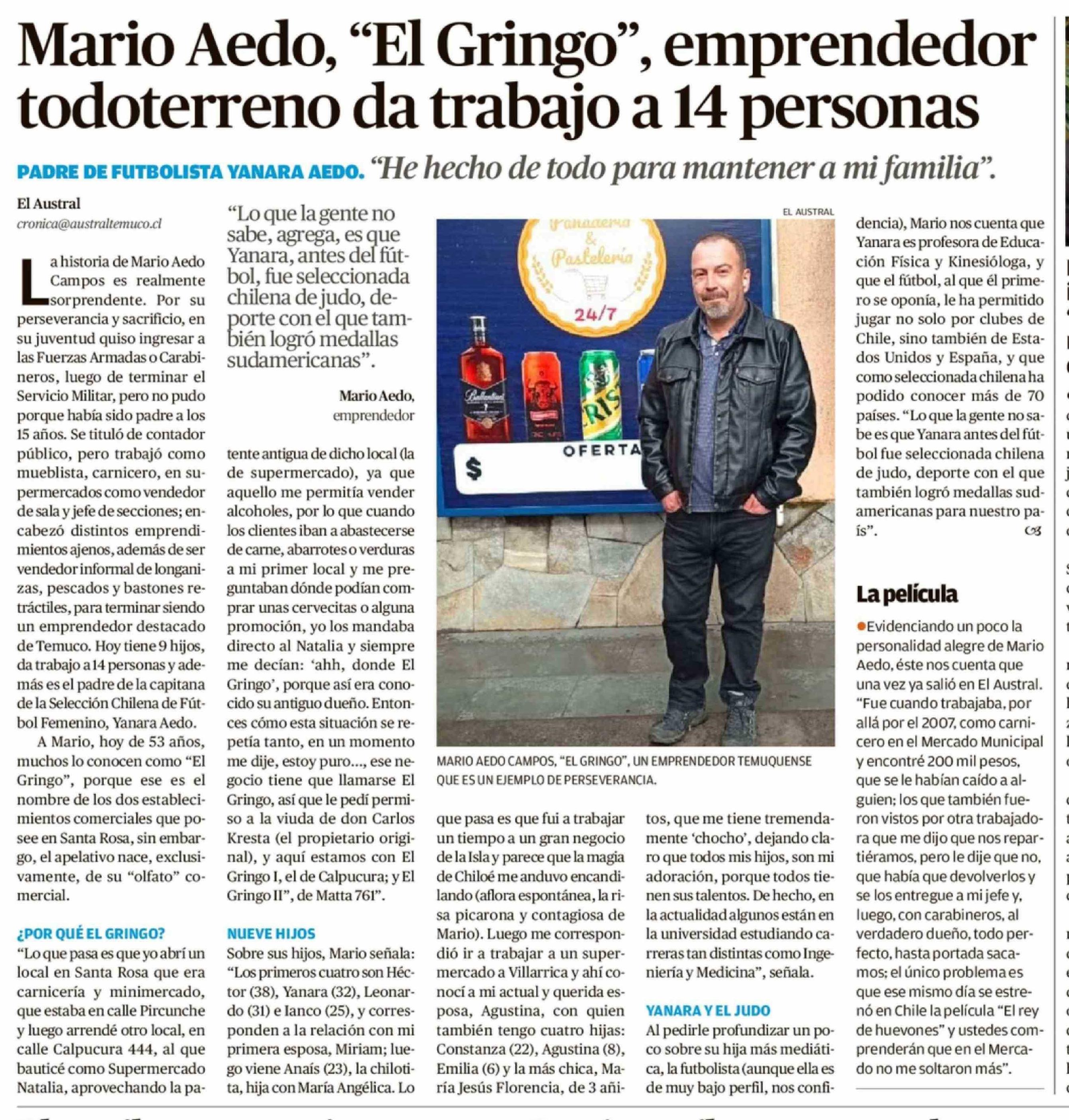 Mario Aedo, "El Gringo", emprendedor todoterreno da trabajo a 14 personas 16-02-2026 El Austral de la Araucanía |