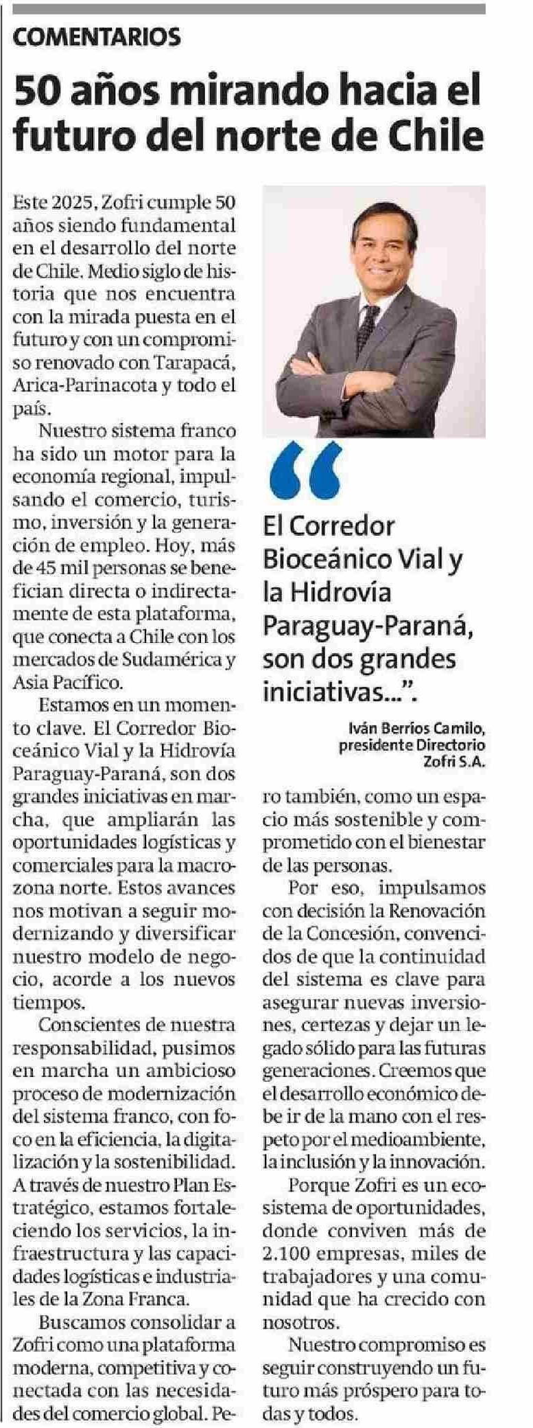 COLUMNAS DE OPINIÓN: 50 años mirando hacia el futuro del norte de Chile 14-06-2025 La Estrella de Iquique |