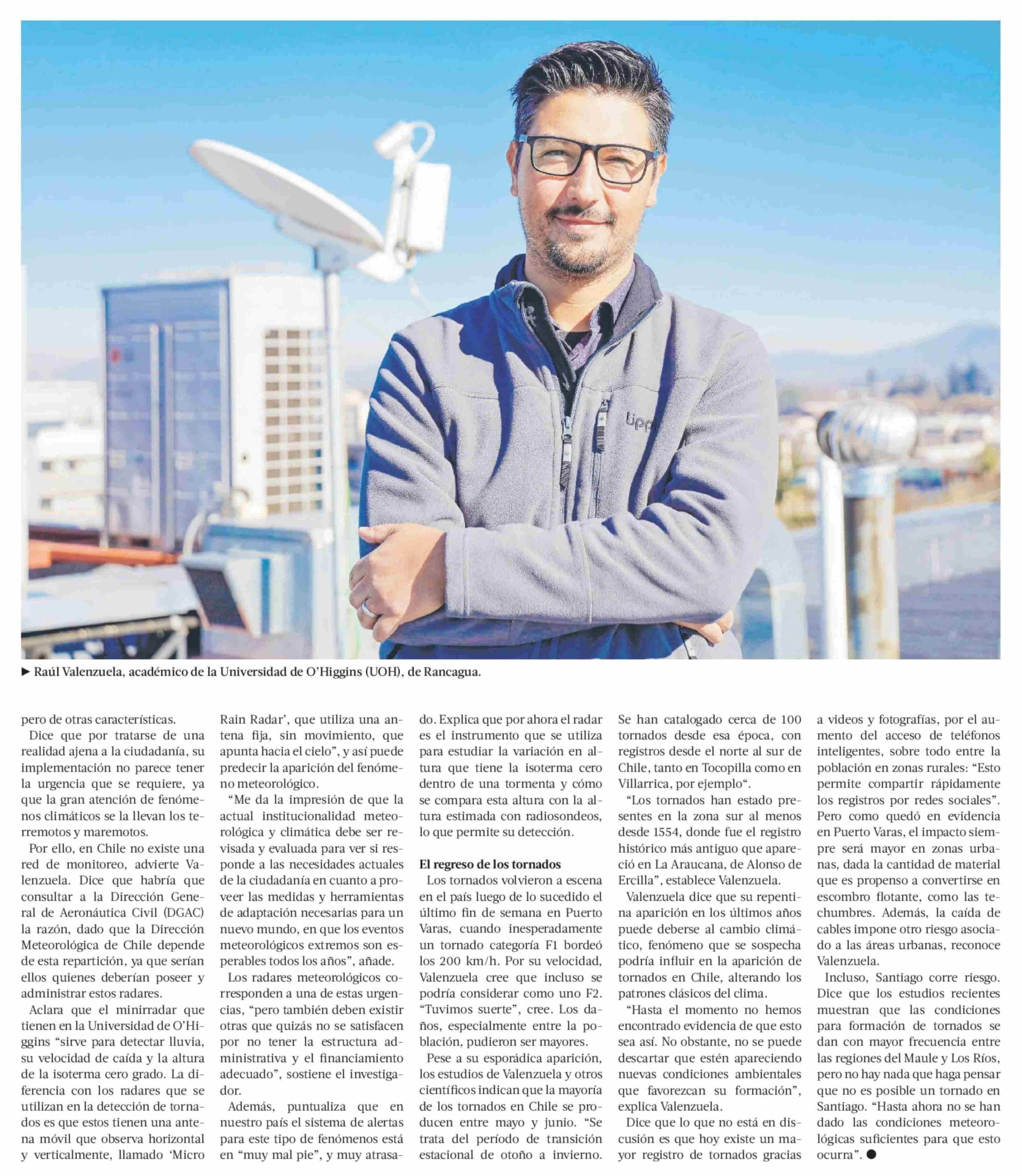 Raúl Valenzuela El científico chileno que persigue tornados 31-05-2025 La Tercera |