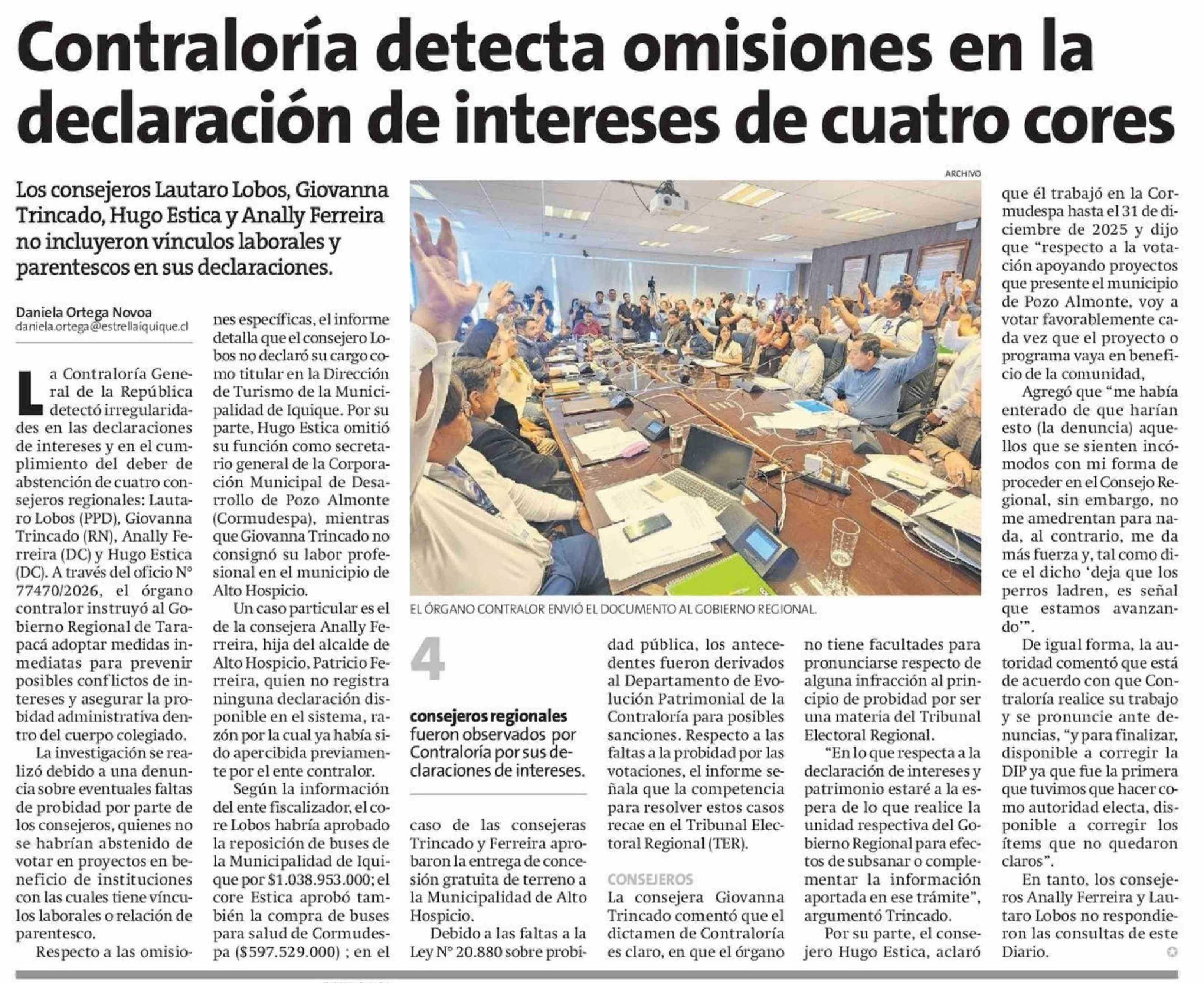 Título: Contraloría detecta omisiones en la declaración de intereses de cuatro cores