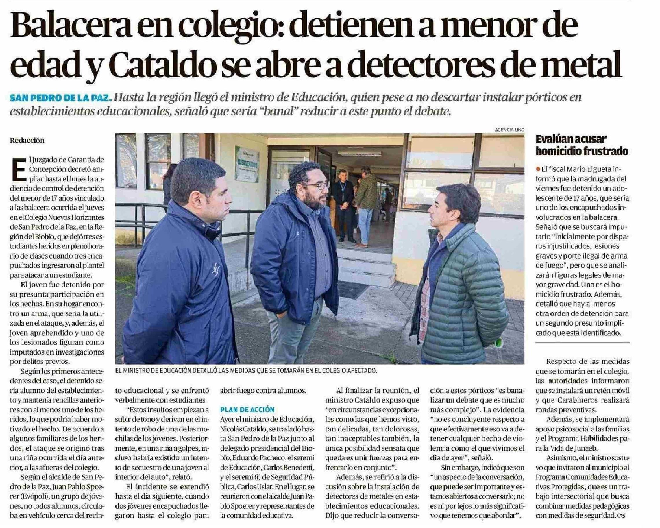 Balacera en colegio: detienen a menor de edad y Cataldo se abre a detectores de metal 31-05-2025 Crónica de Chillán |