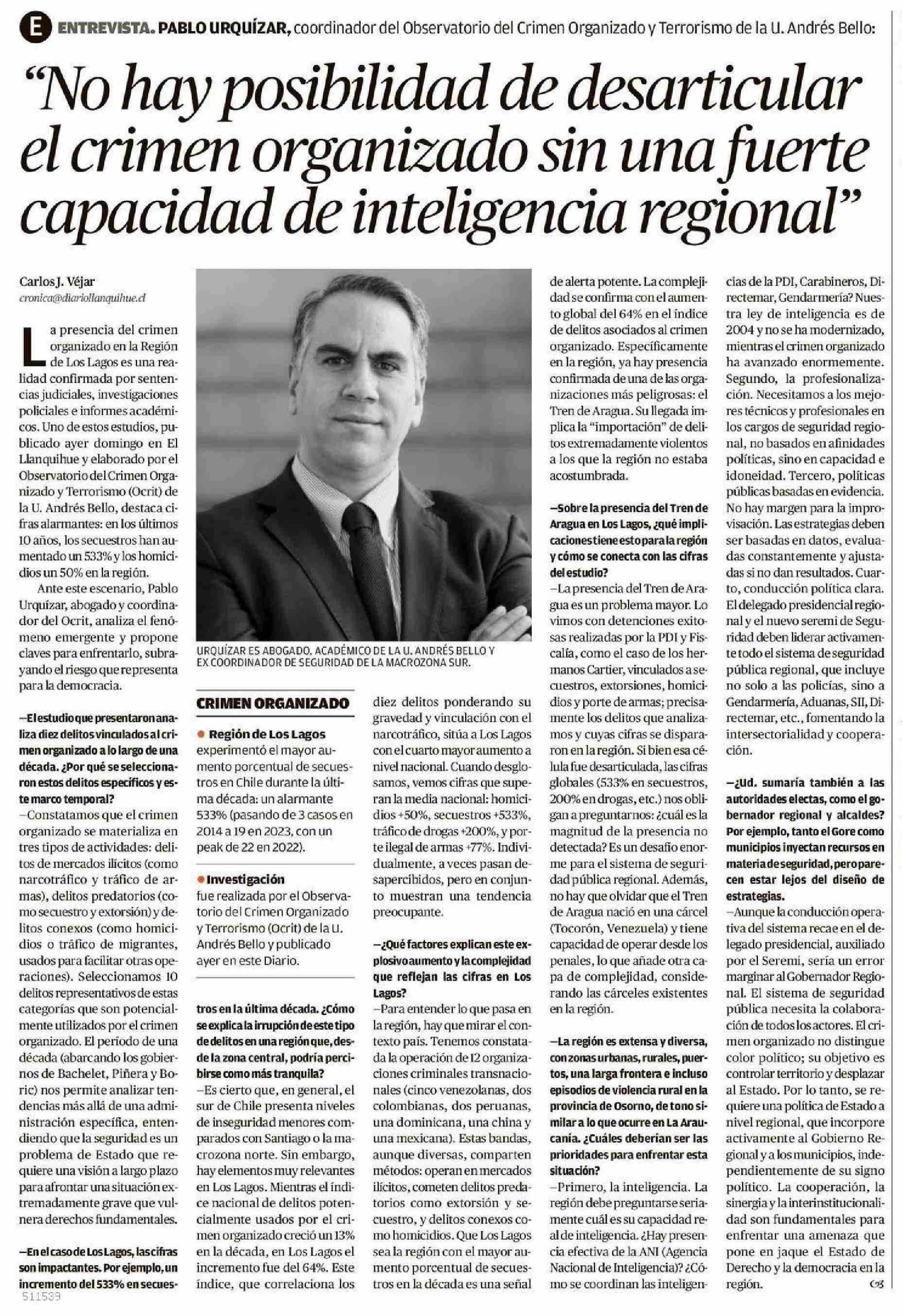 “No hay posibilidad de desarticular el crimen organizado sin una fuerte capacidad de inteligencia regional” 05-05-2025 El Llanquihue |