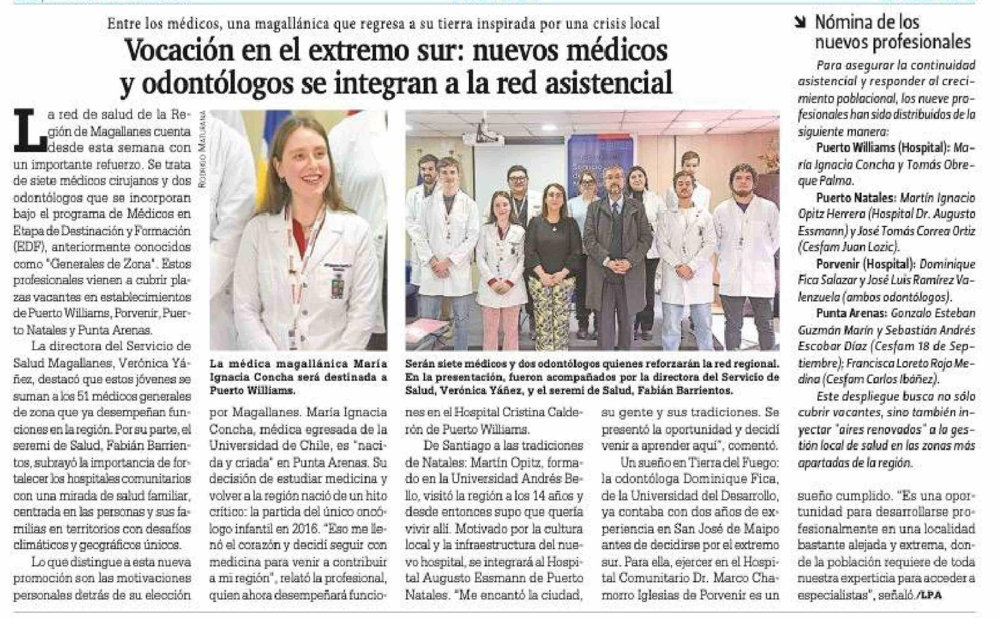 Título: Vocación en el extremo sur: nuevos médicos y odontólogos se integran a la red asistencial