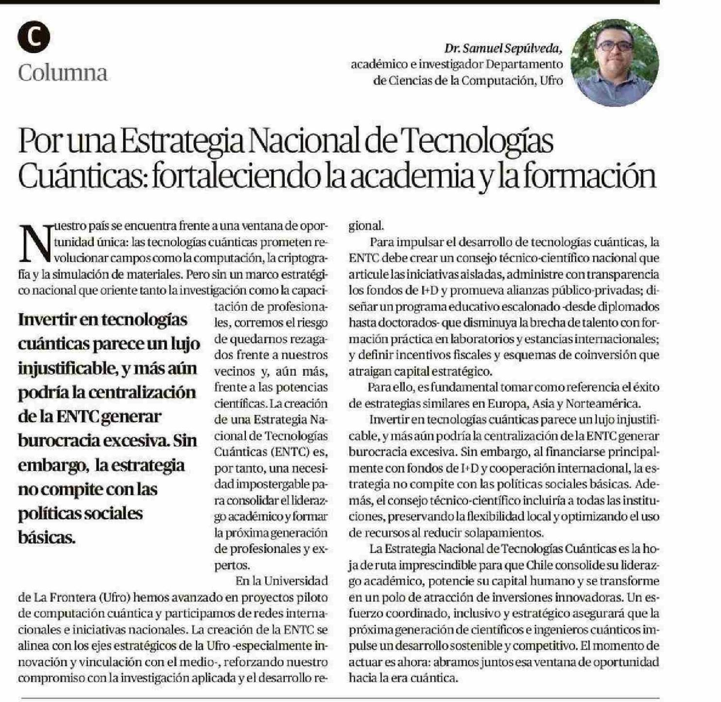 Por una Estrategia Nacional de Tecnologías Cuánticas: fortaleciendo la academia y la formación 23-05-2025 El Austral de la Araucanía |