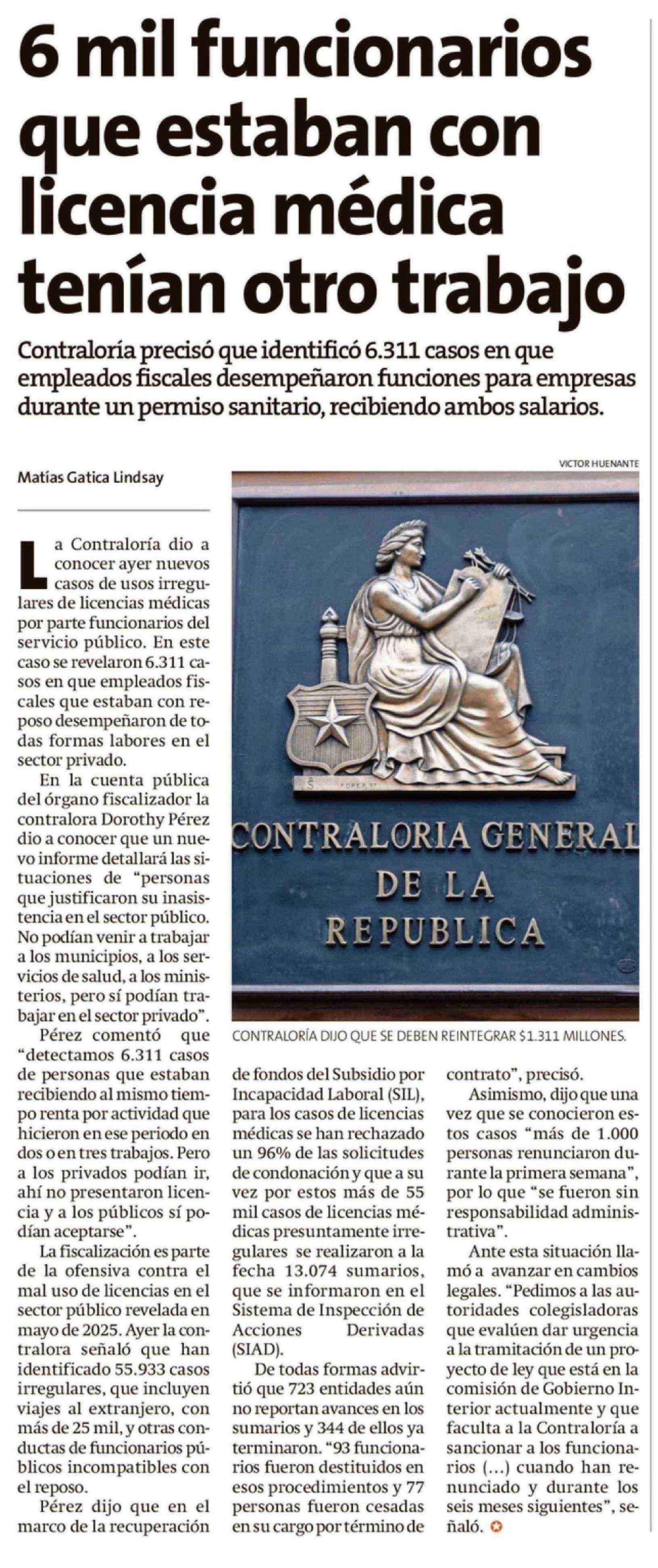 Título: 6 Mil funcionarios que estaban con licencia médica tenían otro trabajo