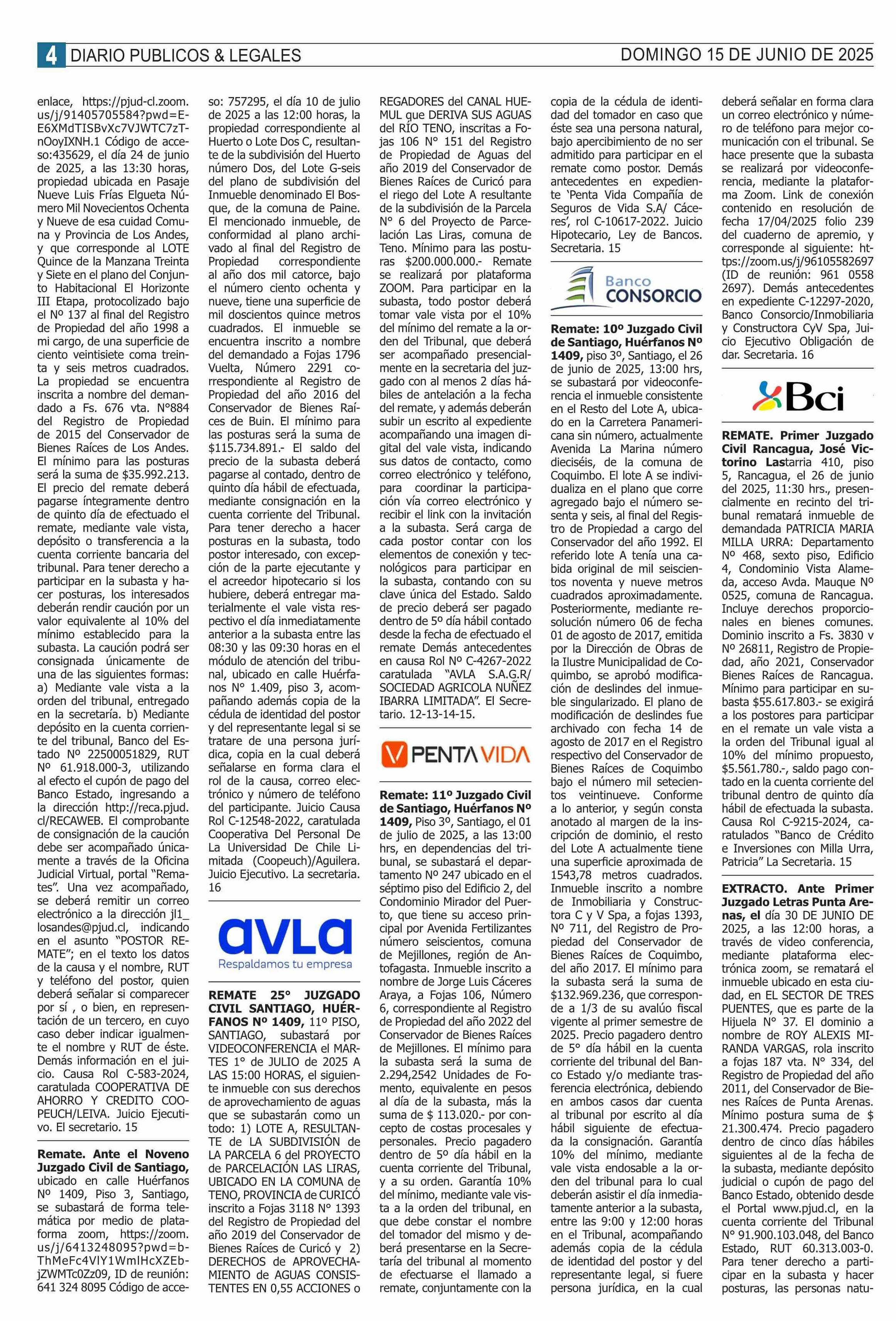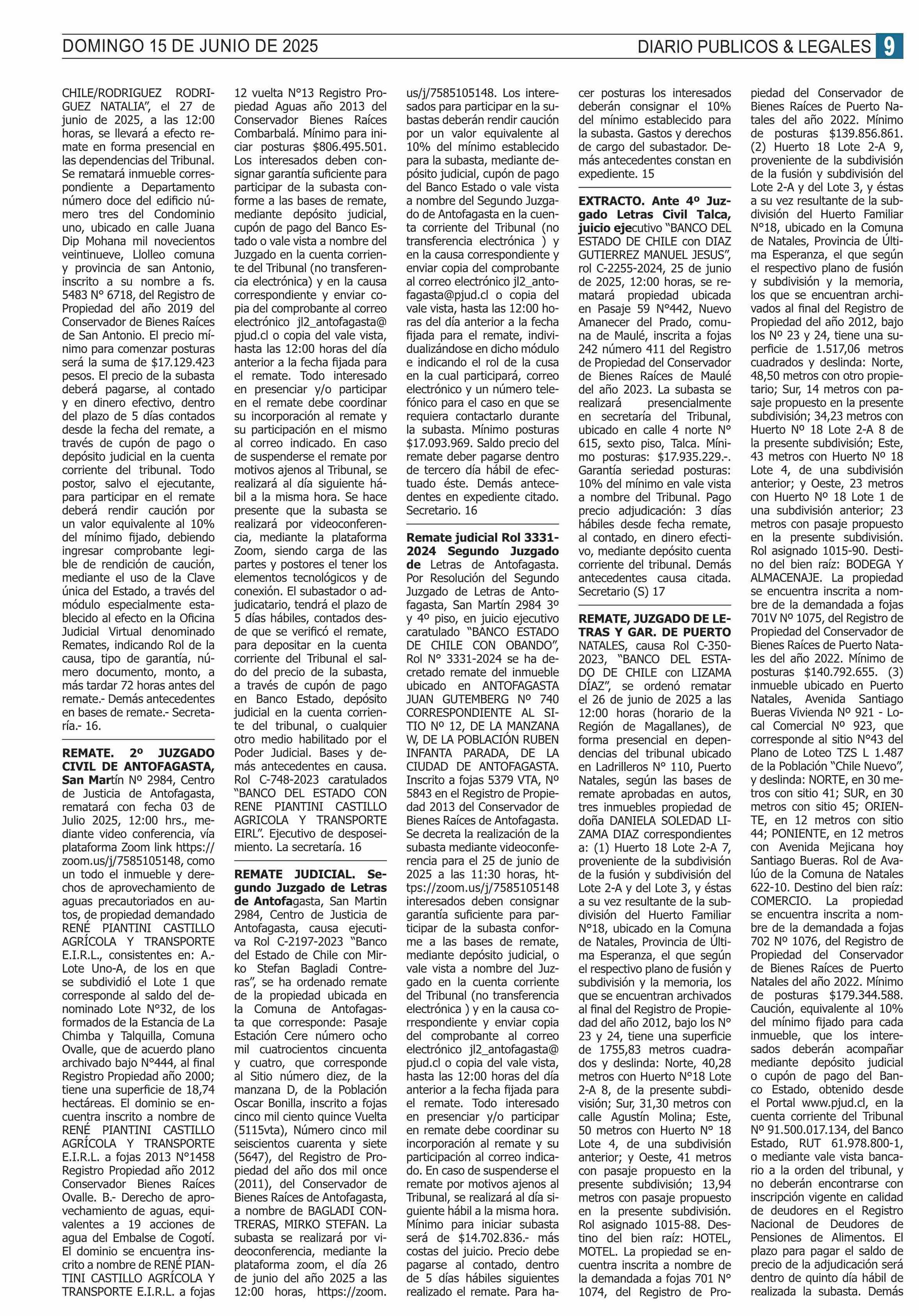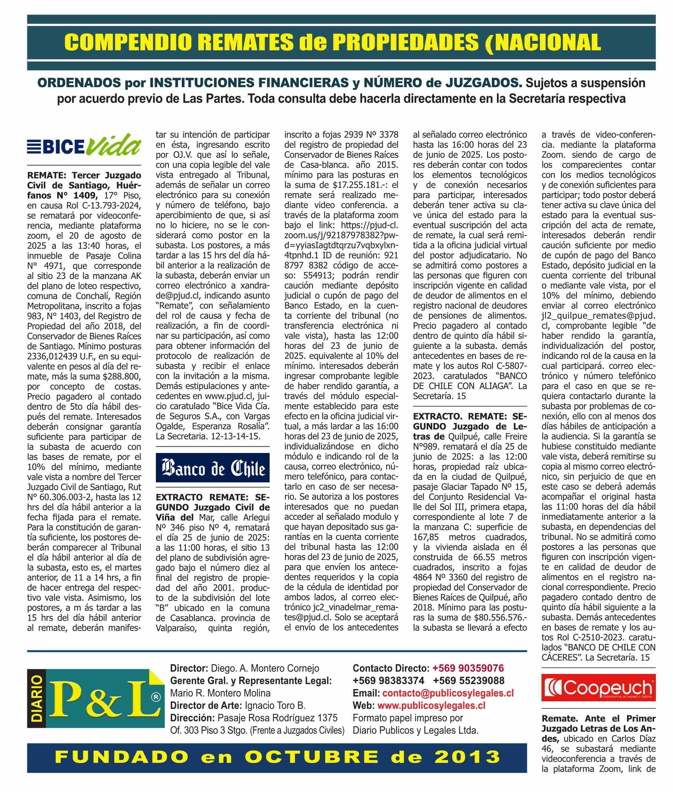 COMPENDIO REMATES de PROPIEDADES (NACIONAL 15-06-2025 P&L Públicos y Legales |