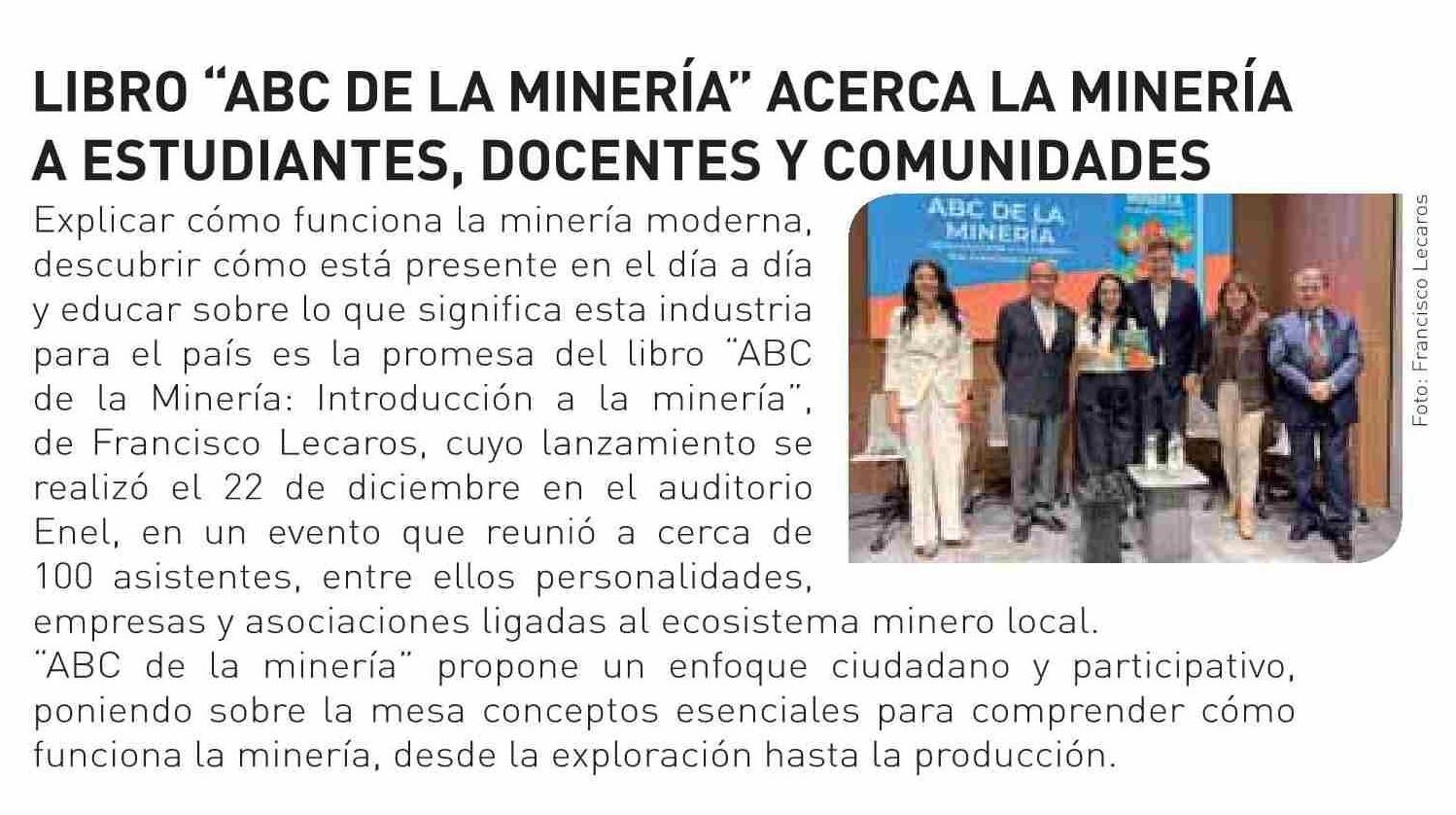 LIBRO “ABC DE LA MINERÍA ACERCA LA MINERÍA A ESTUDIANTES, DOCENTES Y COMUNIDADES 12-01-2026 Revista Nueva Minería & Energía |