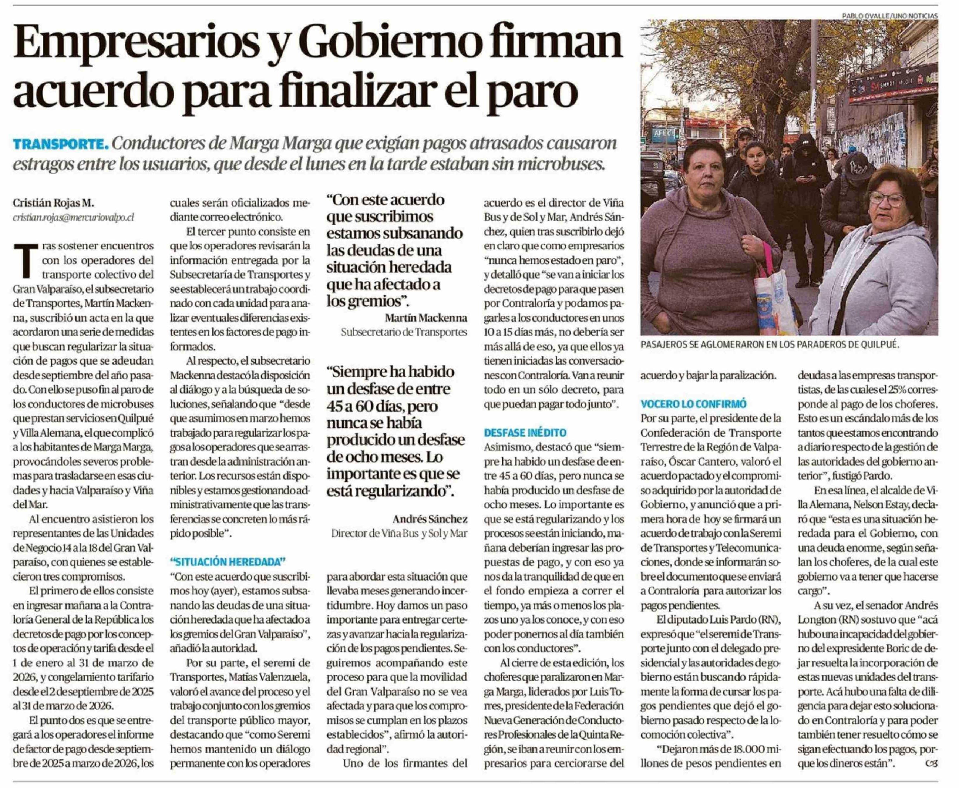 Empresarios y Gobierno firman acuerdo para finalizar el paro 29-04-2026 El Mercurio de Valparaíso |